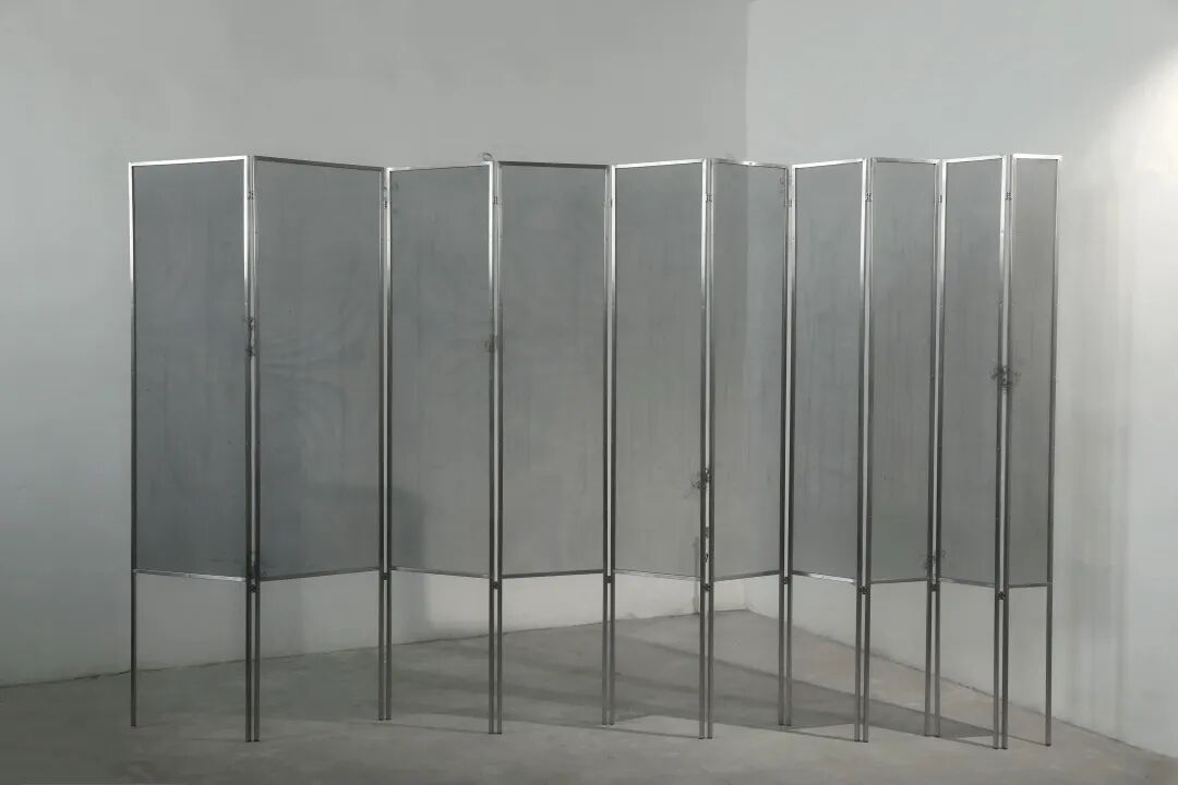 《过好⾃⼰的⽣活就好了》,陈旭,尺⼨可变,⾦刚纱⽹、不锈钢着⾊,2023