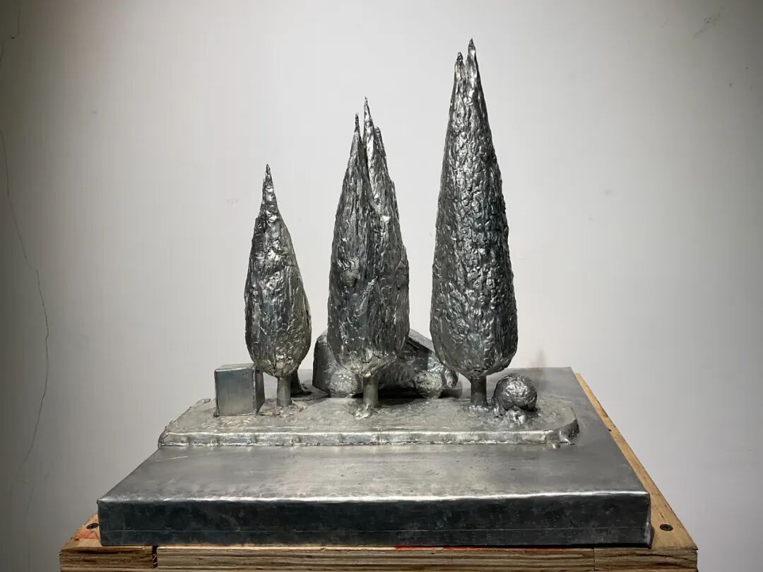 《银色风景系列-3》,方阳,35×30×33厘米,铝板锻造焊接,2025