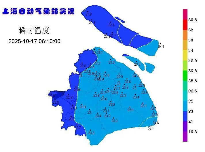18日早晨较强冷空气开始影响本市,气温逐步下降,19日最高气温下降至21~22℃,降幅可达6~8℃,19—20日早晨最低气温降至18~19℃。预计19—23日本市日平均气温将连续五天低于22℃,本市有望进入气象意义上的秋天。