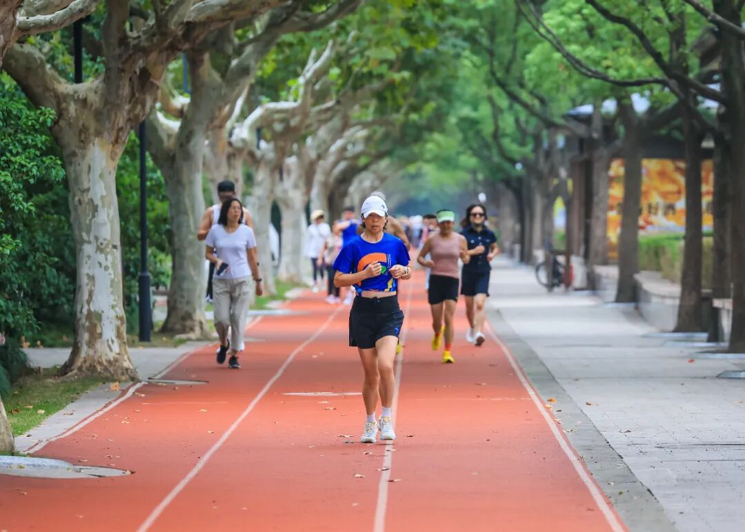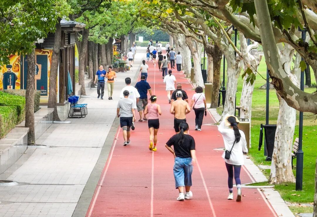 随着秋色渐浓,松江城区各处公共健身空间的人气高涨。晨跑市民的身影穿梭于中央公园跑道上的绿叶间,街边健身点、社区运动区也随处可见健身者