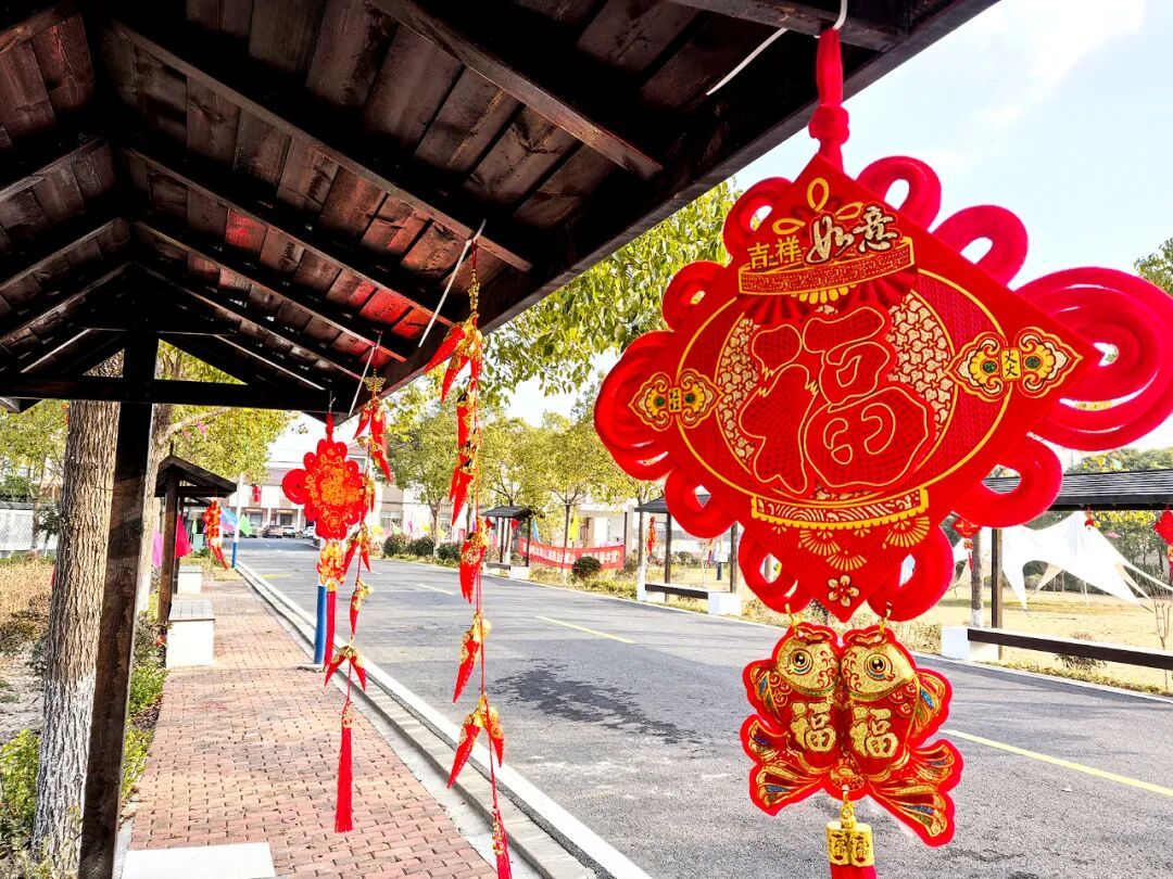 从奉城镇往北,沿着奉联路一直走,半小时后,分水墩村到了。走进村子,路两边的景物,让人不由得生出要慢些走、多些看的念头。行道树间,盏盏红灯笼为乡村点缀喜气,柏油路面洁净平坦,路两旁的民居农舍错落有致。楼房一律白墙黛瓦,有些院落砌着漂亮围墙,里面是崭新的现代版的小洋房;有些院落围墙爬满了蔷薇、石榴花等花草,农舍像是花园、果园。还有,家家户户的门前屋后,都有一个小菜园,青黄瓜、紫茄子、绿豆角、红番茄,生机勃发,透着田园的生活气息。走入这样的农村,有误入桃花源的感受。