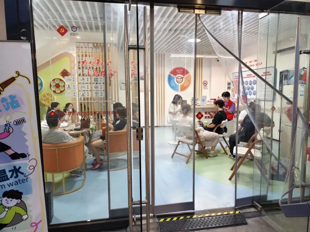 基础服务的升级藏着最实在的温暖。通过街区与社区资源力量联动,打造开放共享的“红色驿站”,空调全天候运转,一次性纸杯、双型号充电线、可随时取用的折叠椅,构成了候场歌迷的“避风港”。下午四点半刚过,这里就迎来第一批避暑的歌迷,“最多时上下两层全坐满了”,党员志愿者搬椅子的身影成了难忘的画面。更贴心的是“活地图”服务,从卫生间位置到看台捷径,每位志愿者用即时回应解决高频需求,让党群服务更精准、更有温度。