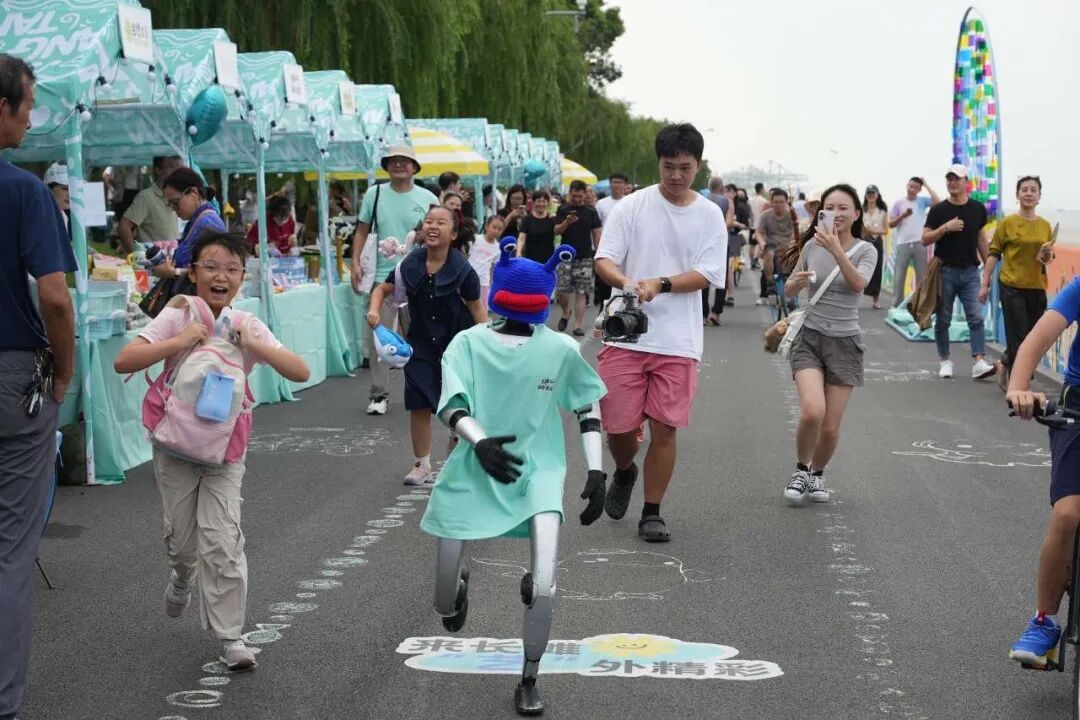 智慧乐跑,机器人陪跑创新互动:开幕日的“智慧乐跑”活动中,人形机器人与机器狗作为“陪跑官”亮相,实现人机协同奔跑,生动演绎机器人技术在公共场景中的落地应用。