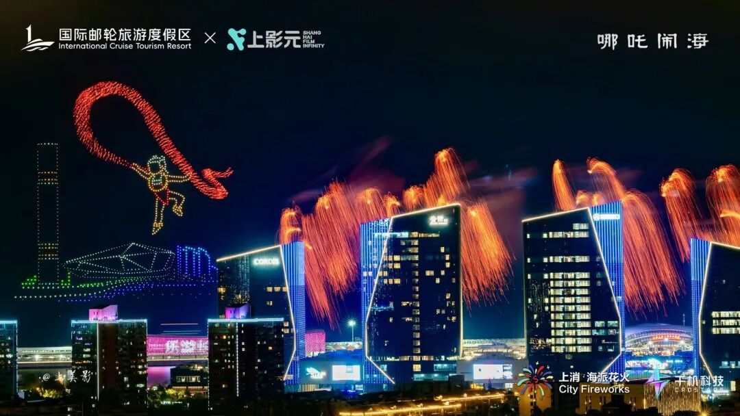 作为核心亮点,“吴淞口空中剧场”在国庆期间再度升级。千架无人机与烟花、数字光影协同,将《哪吒闹海》《大闹天宫》等经典国漫形象搬上天幕,为现场万余名观众呈现震撼的沉浸式视听盛宴。这一科技演绎不仅实现了传统文化的活态传承,更以艺术创新显著提升了区域人气与文旅消费。