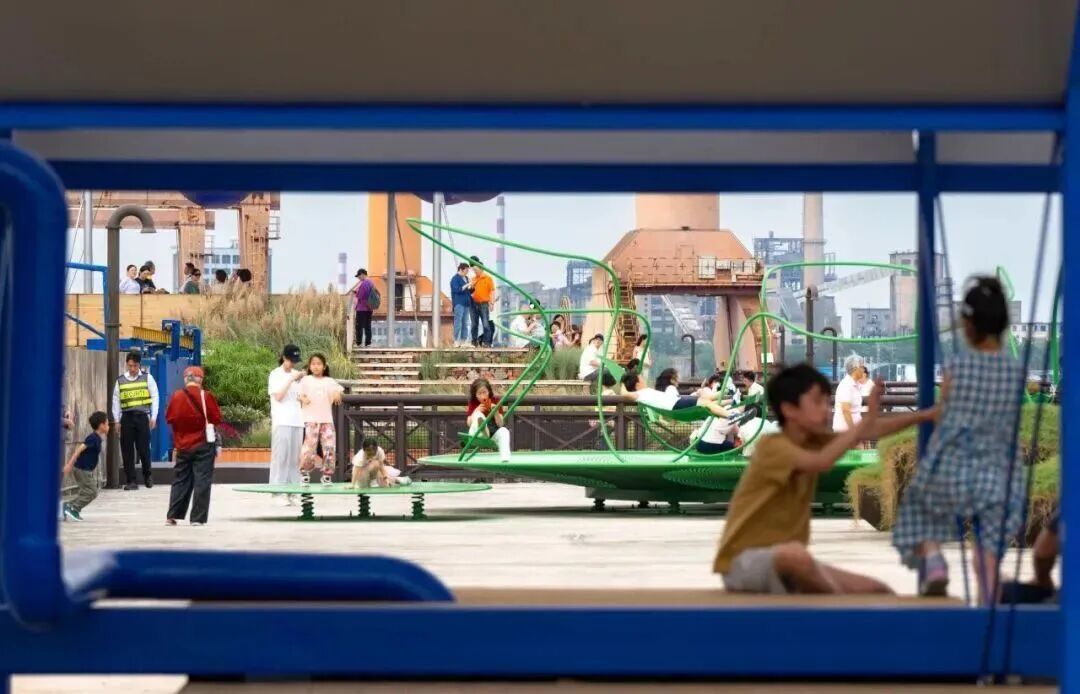 继续沿杨浦滨江前行,就能来到被誉为“中国电力工业摇篮”的杨树浦电厂遗迹公园。这里曾经是远东第一大发电厂,如今已成为集生态、艺术与历史于一体的公共空间。