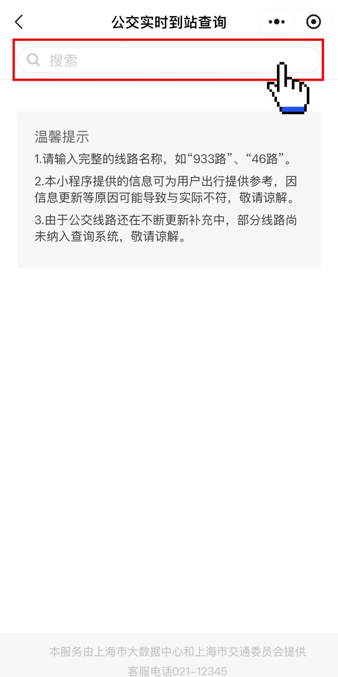 打开“随申办市民云”(APP/微信小程序/支付宝小程序),首页点击「随申码」,进入专区后下拉底部,点击“公交查询”,即可进入“公交实时到站查询”界面。