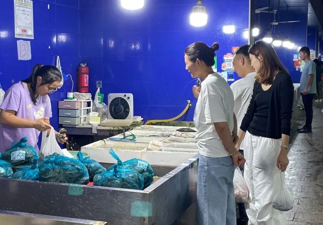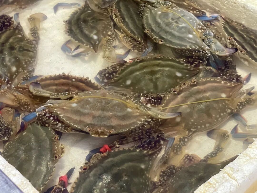 在水产区,秋日的“重头戏”无疑是螃蟹。无论是肥硕的梭子蟹还是大闸蟹,都吸引着食客们的目光。水箱里,螃蟹们吐着泡泡,那即将变成金黄的蟹黄、白璧似的脂膏,是对季节最丰厚的回报。眨眼间,摊主已帮你把蟹冲刷干净系绳打包。买菜的顾客深谙“食蟹而不失原味的唯一方法是整只蒸”,只为锁住一口极致的鲜甜。