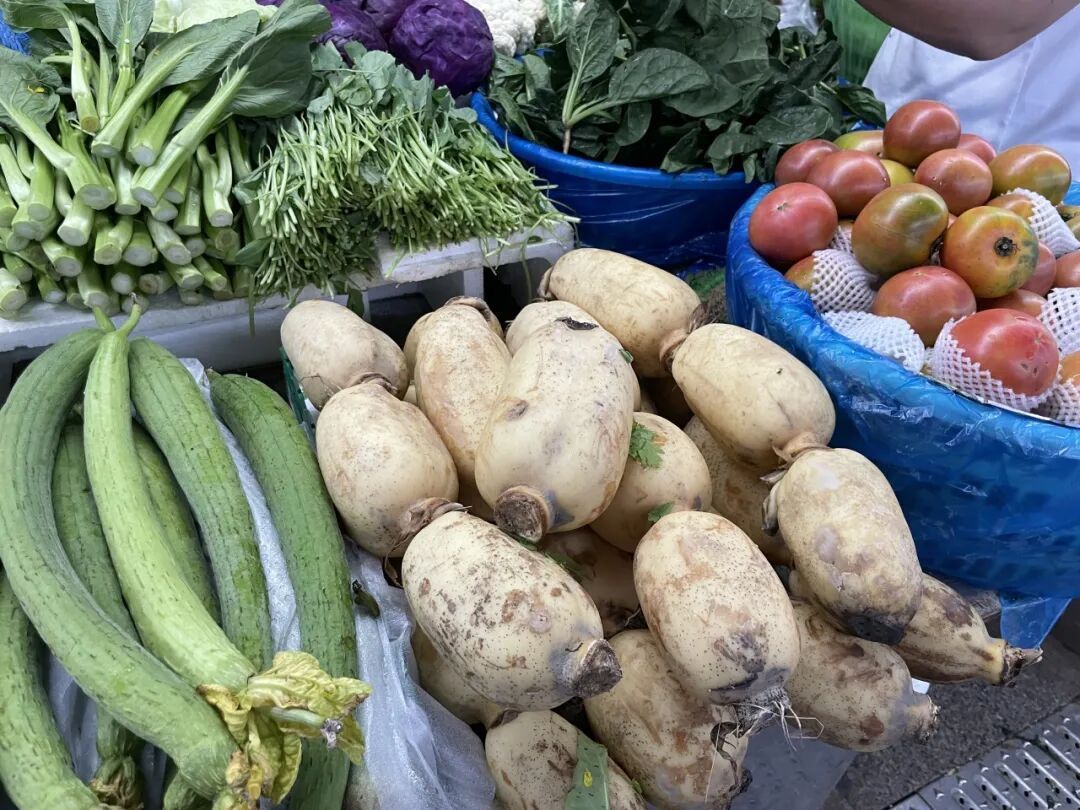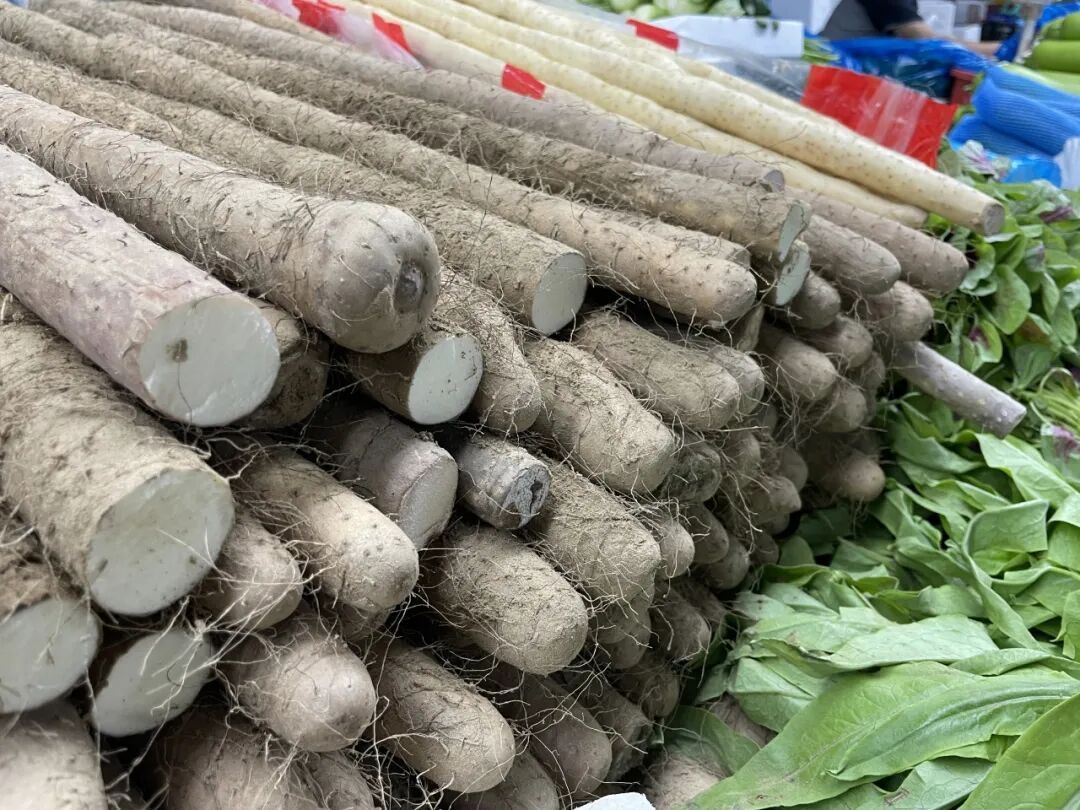 “暖”秋的餐桌上少不了一碗清甜的莲藕汤。此时的莲藕,经过春夏季的沉淀,口感最为粉糯。摊主介绍莲藕清热,煮熟后最是暖脾。再搭配一根同样健脾益胃、滋肾益精的山药,可蒸熟打成泥搭配蓝莓酱就是一道经典甜品,或煮成山药粥,让每一位顾客胃里满含秋日暖意。