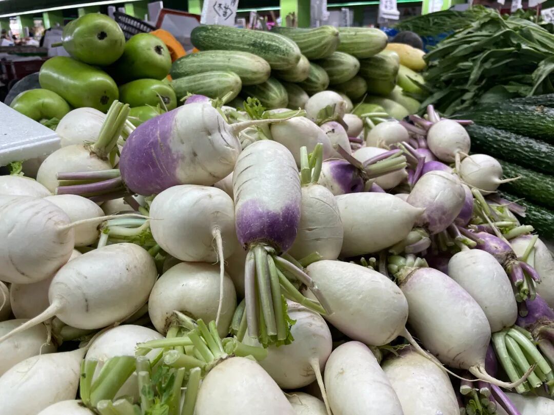 “秋天干燥,买根白萝卜和排骨一起炖蛮好的。”一进市场,蔬菜区最抢眼的便是那一片清脆的白色。水灵灵的白萝卜堆成了小山。俗话说“秋后的萝卜赛人参!”白萝卜此时最是当季,无论用来煲汤还是烧肉都透着一股甜滋滋的味道。具有清热祛火、生津止渴、化痰止咳、润肺除燥的功效。