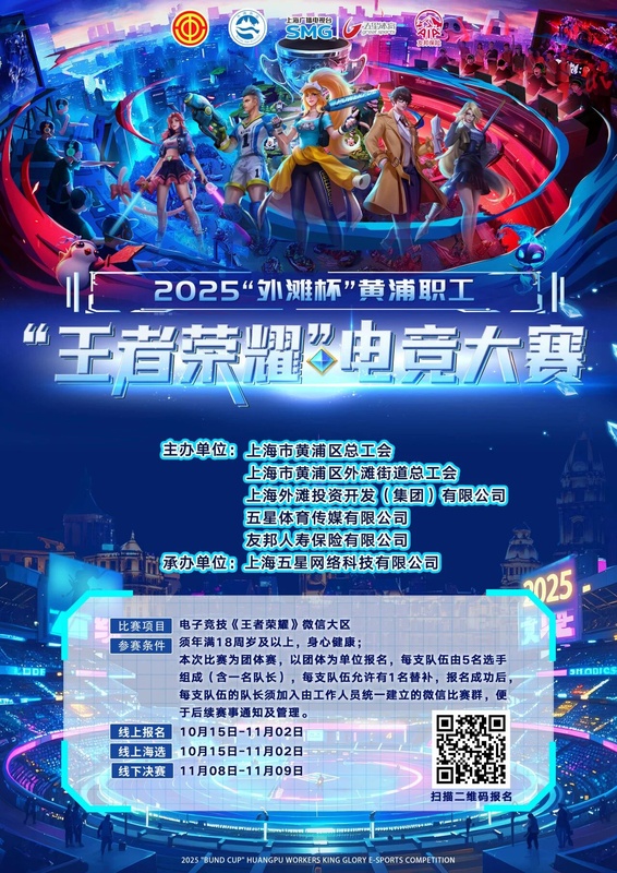 2025“外滩杯”黄浦职工“王者荣耀”电竞大赛震撼来袭!无论你是征战多年的老将,还是初露锋芒的新秀,只要心怀热爱,这里就是你展现技术的舞台!速速集结战友,一起为荣耀而战!