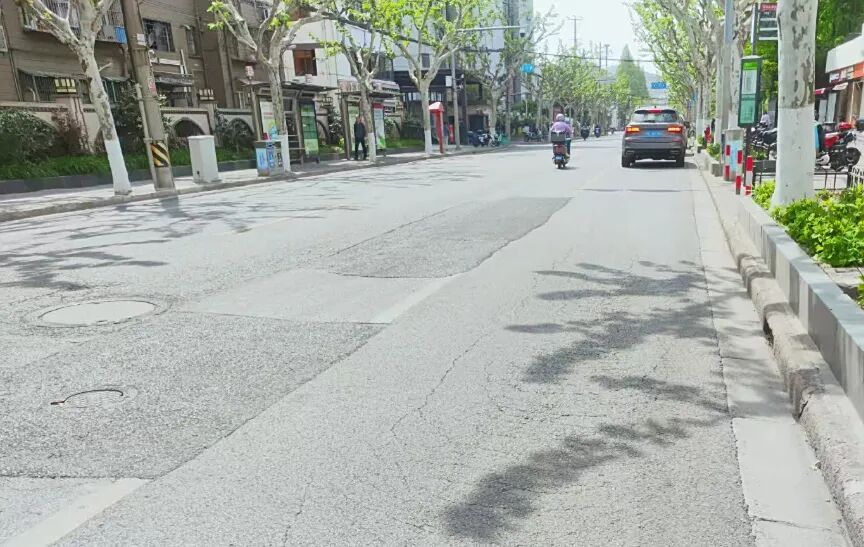“看看车站北路500弄那段路啊!路面全是大补丁。”