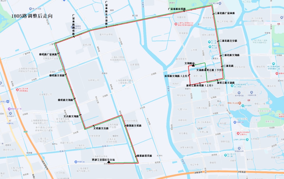 调整后撤销站点:三新北路广富林路、三新北路文宇路、文汇路龙城路、文汇路人民北路、人民北路文汇路、人民北路文翔路