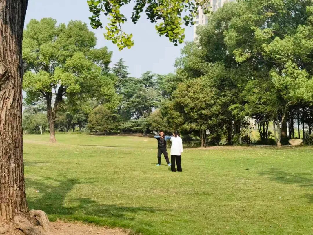 今晨的松江天气晴朗,天空一碧如洗,明媚的阳光让人感到暖意融融。中央公园里,悬铃木枝头的树叶已然泛黄,阳光倾泻而下,在草坪上留下斑驳的树影,桂花也已盛开,散发着浓郁的芬芳,处处都是深秋气息。