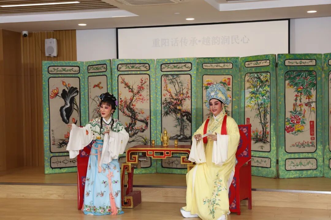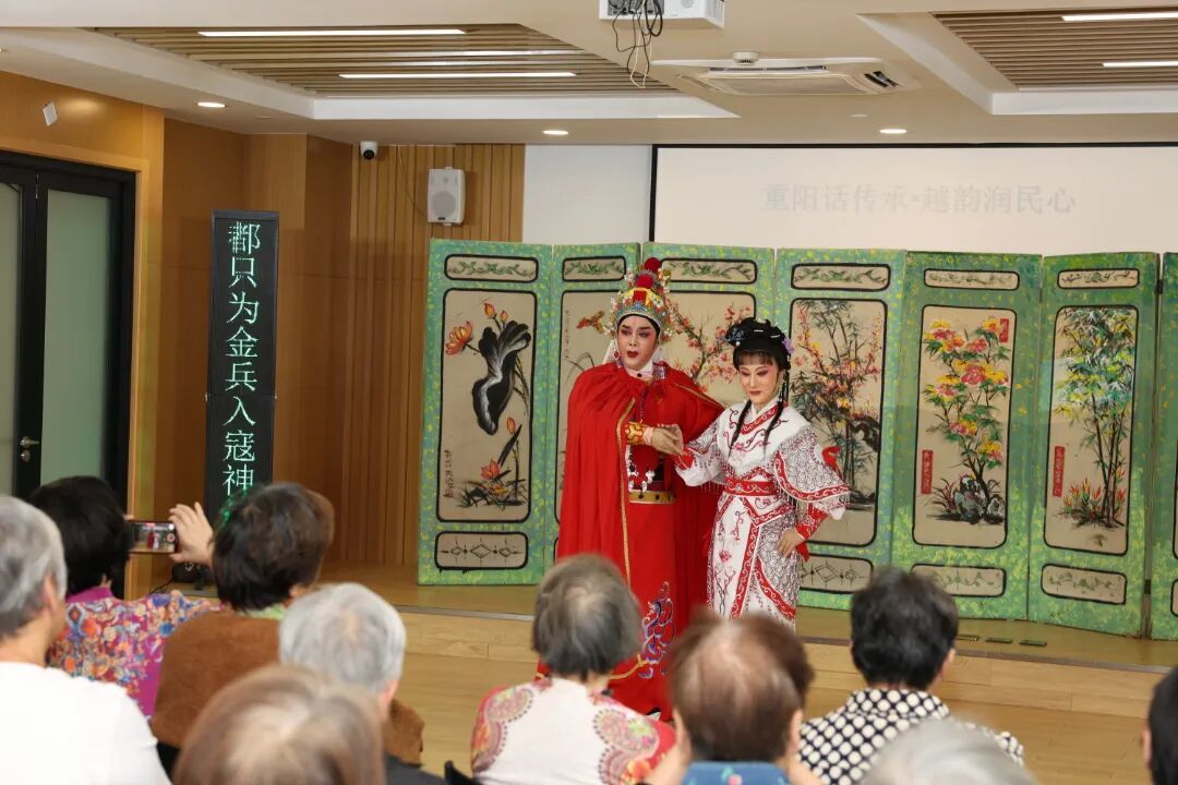 舞台上,从越剧经典曲目《一缕麻》《梁祝》到越剧小戏《阿戆芝麻官》等曲目,演员的生动演绎让观众们喝彩声连连;徐汇越剧团团长樊亚娟还和现场的老年朋友们分享了关于重阳节的传统文化和节日习俗,用扎实的越剧表演带给大家不一样的艺术赏析,手指操的互动更是让台上台下融成一片。“我们就是喜欢听这些传统戏曲,一听到消息就报名参加,这样的老年生活充实而快乐,真的很好。”前来参加活动的何阿姨和张阿姨连连说道。