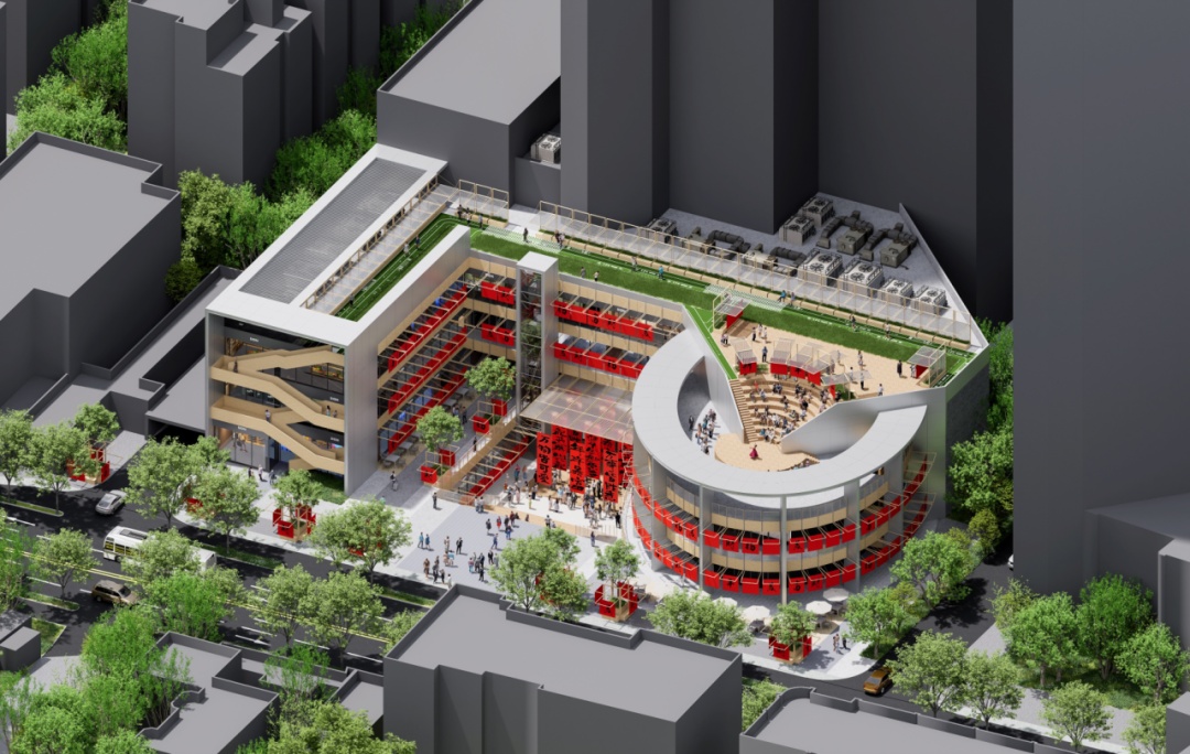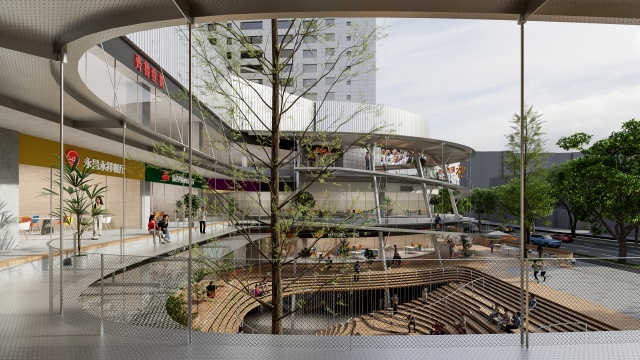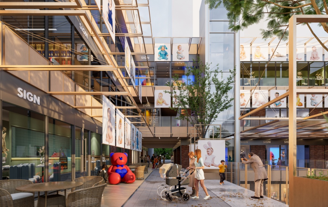 通过梳理整体流线,优化建筑立面,增强广告展示与视觉规整性,提升项目形象与商业价值,旨在打造一个融合年轻活力、社区文化与商业功能的城市更新示范点,形成集学术交流、社区互动与休闲商业于一体的活力街区。