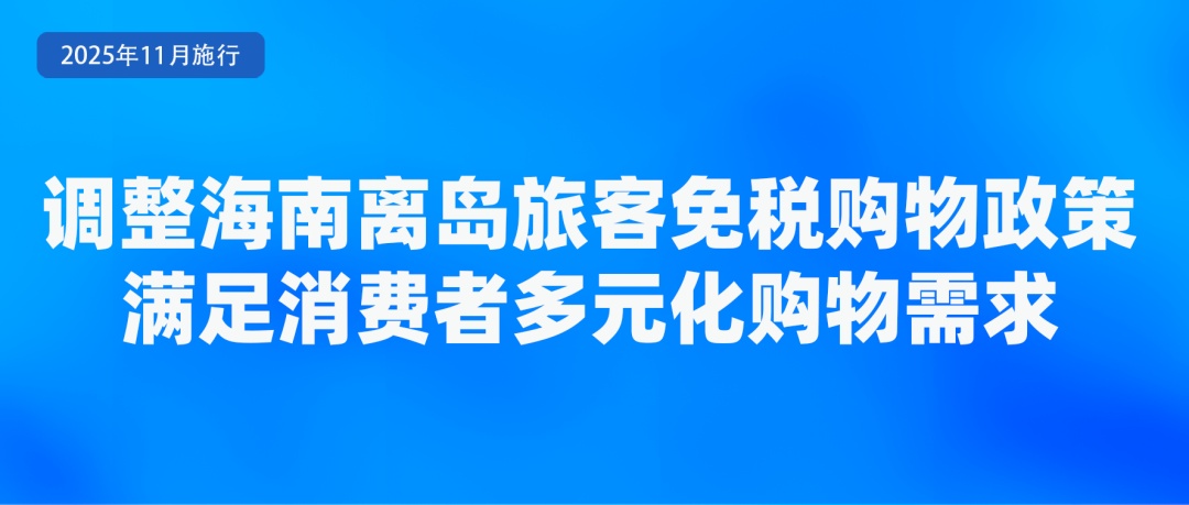 财政部等三部门联合发布《关于调整海南离岛旅客免税购物政策的公告》,2025年11月1日起执行。一是扩大离岛免税商品范围,增加宠物用品、可随身携带的乐器、微型无人机、小家电等商品。优化后的离岛免税商品由45大类提高至47大类。二是允许服装服饰、鞋帽、陶瓷制品、丝巾、咖啡、茶等国内商品,进入离岛免税店销售,退(免)增值税、消费税。三是将离岛旅客免税购物年龄由年满16周岁调整为年满18周岁。四是允许离境旅客享受离岛免税政策,离岛且离境旅客购买离岛免税商品金额计入其每年10万元人民币免税购物额度,不限次数。五是对一个自然年度内有离岛记录的岛内居民,在本自然年度内可按“即购即提”提货方式有关要求,不限次数购买离岛免税商品。