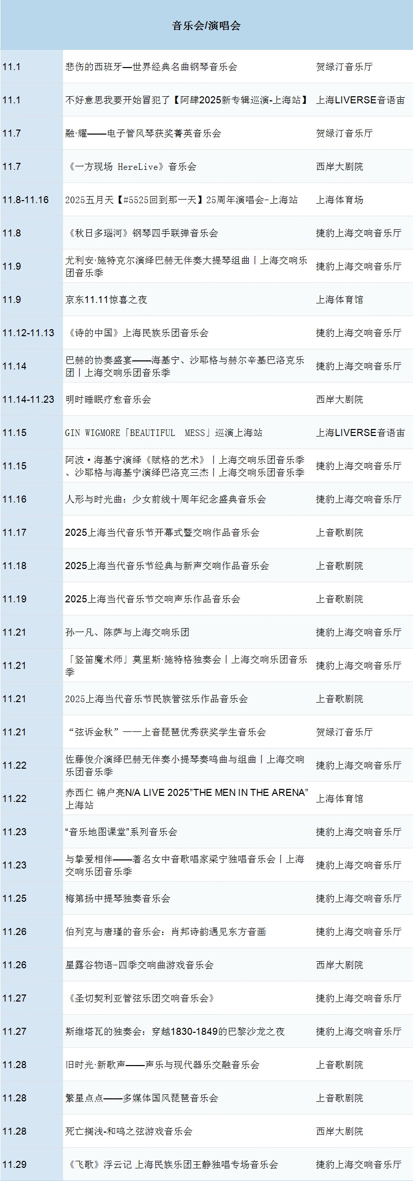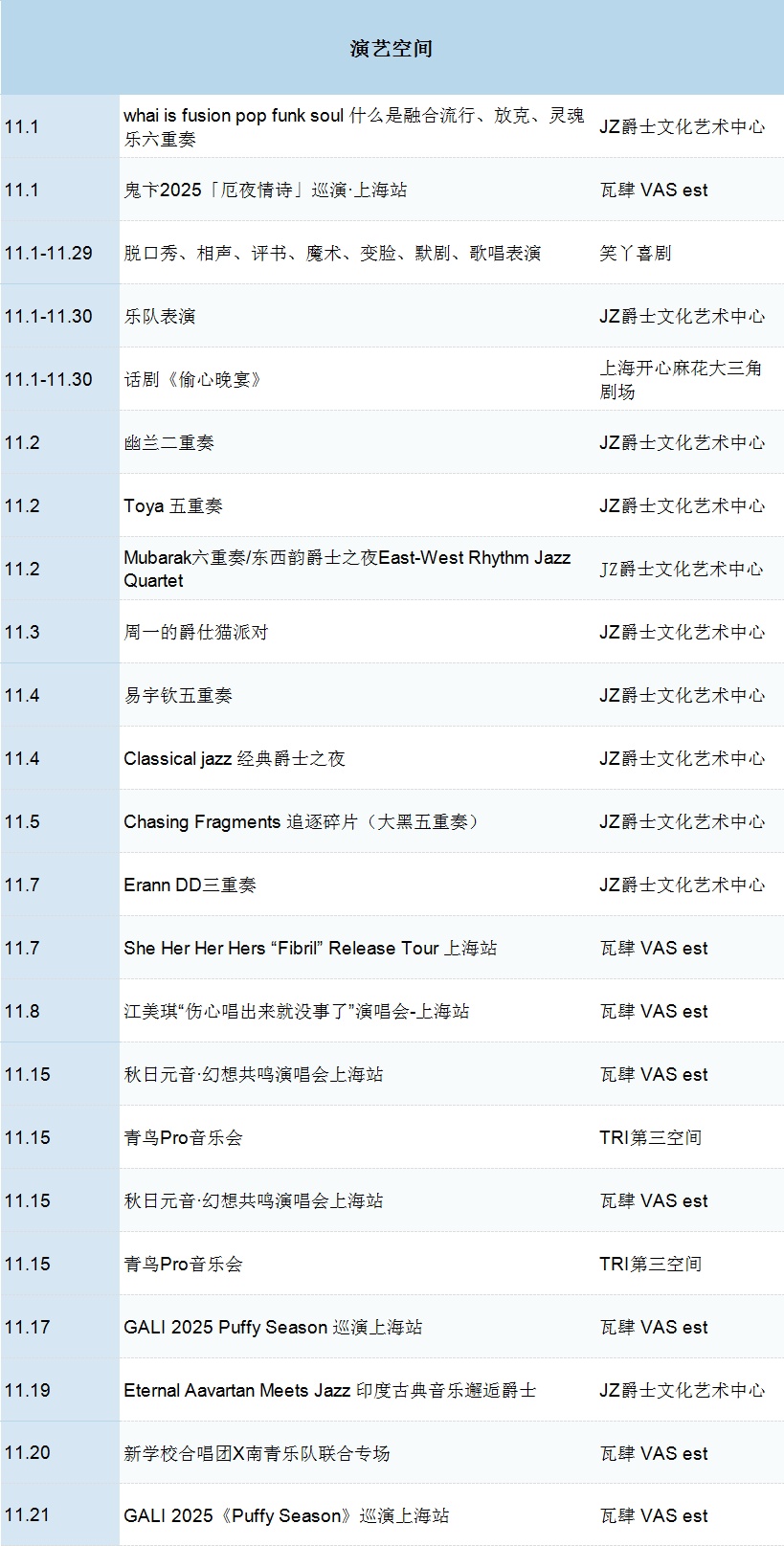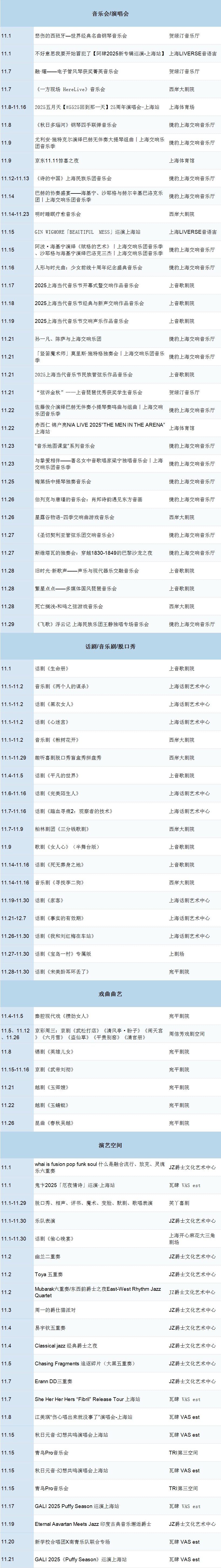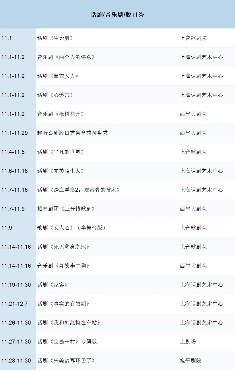 11月快讯 演出早知道