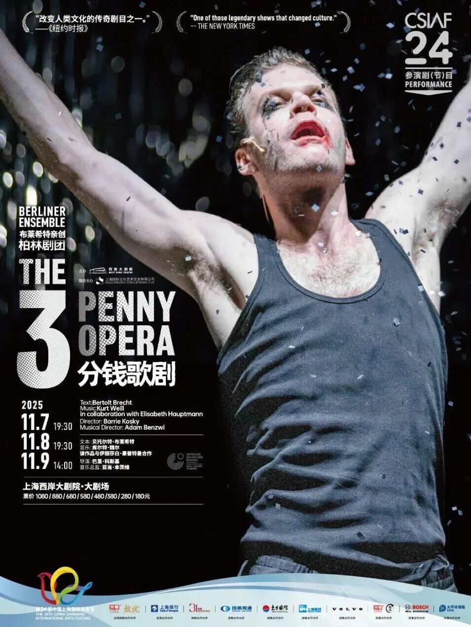 一部穿越百年,横跨东西的传奇作品;一则华丽外壳下的冷酷寓言,让你在笑声中惊觉,在旋律中直视锋利现实。柏林剧团《三分钱歌剧》,今秋11月上海西岸大剧院亚洲首演。