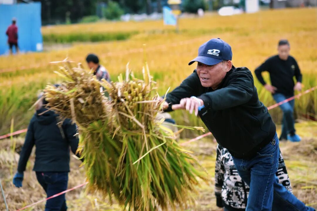 在“水稻收割体验”环节,选手们在专家指导下弯腰收割。来自南安村的陆阿姨边捆扎稻谷边擦汗:“这活儿看着简单,真要干好得用巧劲。”年近七旬的蒋大爷则手法娴熟,开心地展示着刚割下的水稻:“几十年没摸镰刀了,瞧,这手感还在!”