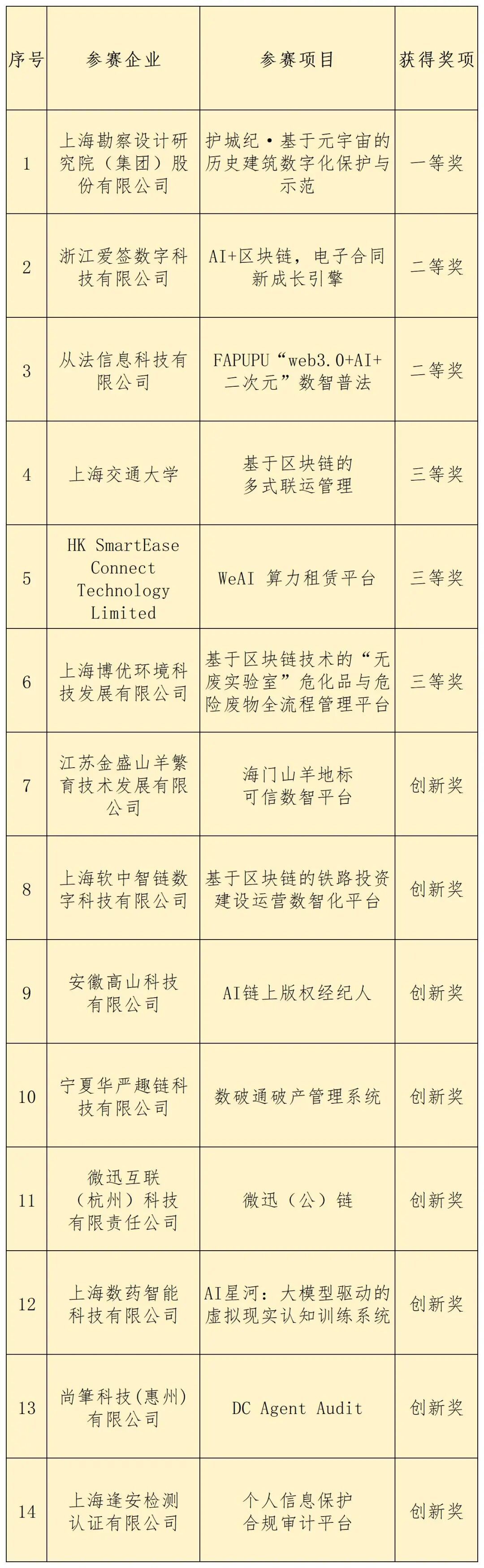 附件:2025“数通链谷”杯第七届长三角区块链应用创新大赛决赛获奖项目名单