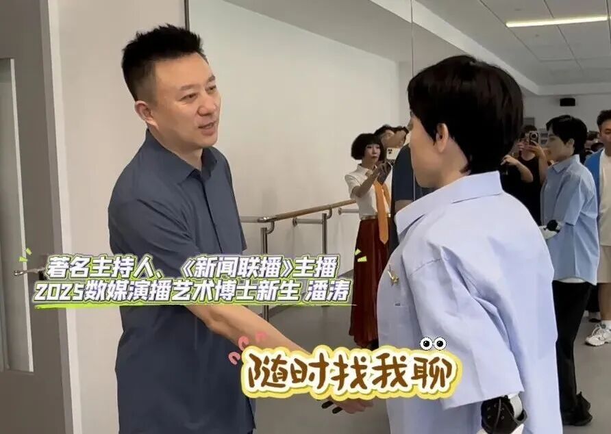 新生报道现场,就吸引了众人围观,同为上戏博士新生的《新闻联播》主播潘涛还和“学霸01”握手交流。