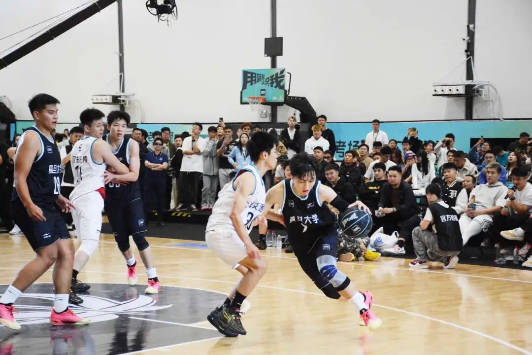 决赛现场,复旦大学与上海交通大学上演扣人心弦的争夺战。篮球明星郭艾伦也在空降观众席,参与现场解说并与球迷互动。
