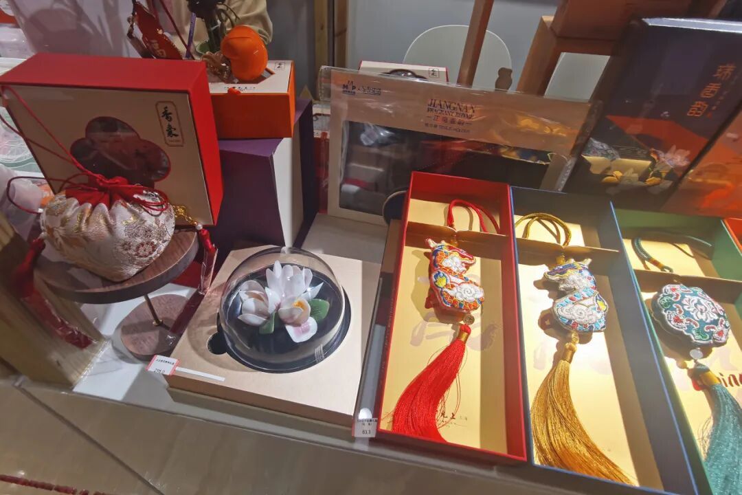 在同步“开市”的非遗市集上,上海雷允上药业西区有限公司带来的数十款特色香囊和文创系列产品也深受参观者的青睐和点赞。