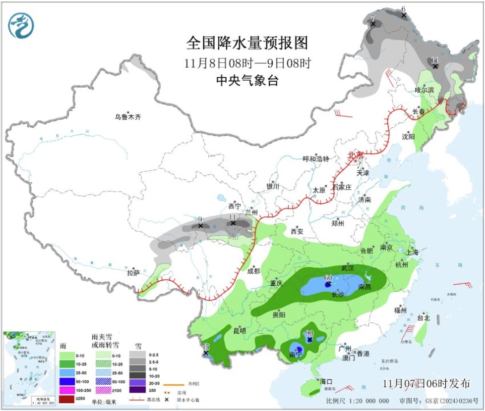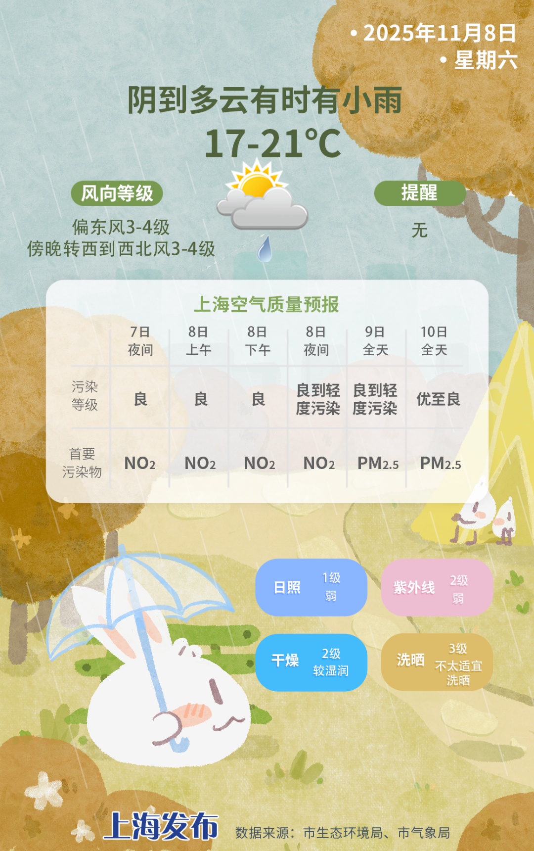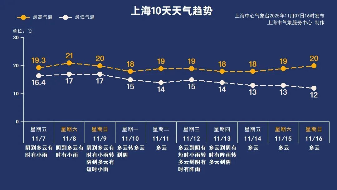 11月9日(周日):阴到多云有时有小雨转阴到多云有短时小雨,17~20℃