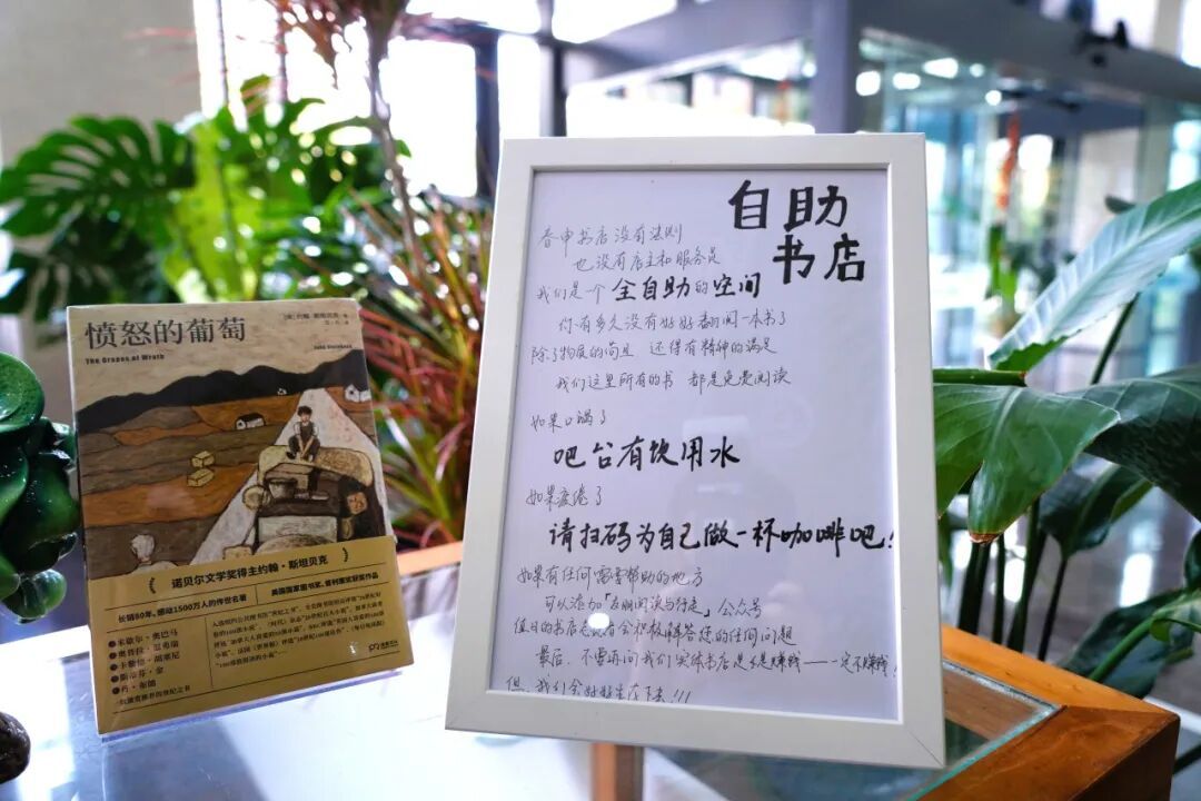 同时,书店还配备榨汁机、咖啡机、充电插座等便民设施,读者可在阅读间隙自助冲泡咖啡或鲜榨果汁,稍作休憩,让这里不仅是阅读的空间,更是一个温馨惬意的放松角落。