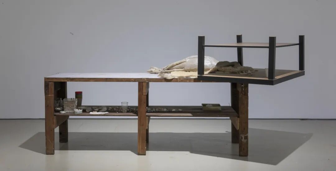 展陈团队沿用展馆建筑本身的工业语汇——素混凝土砖,构成人造地形,贯穿整个空间。如同花园中的假山,塑造观者的视角,这些混凝土砖也为观赏艺术作品提供了不同的视角。