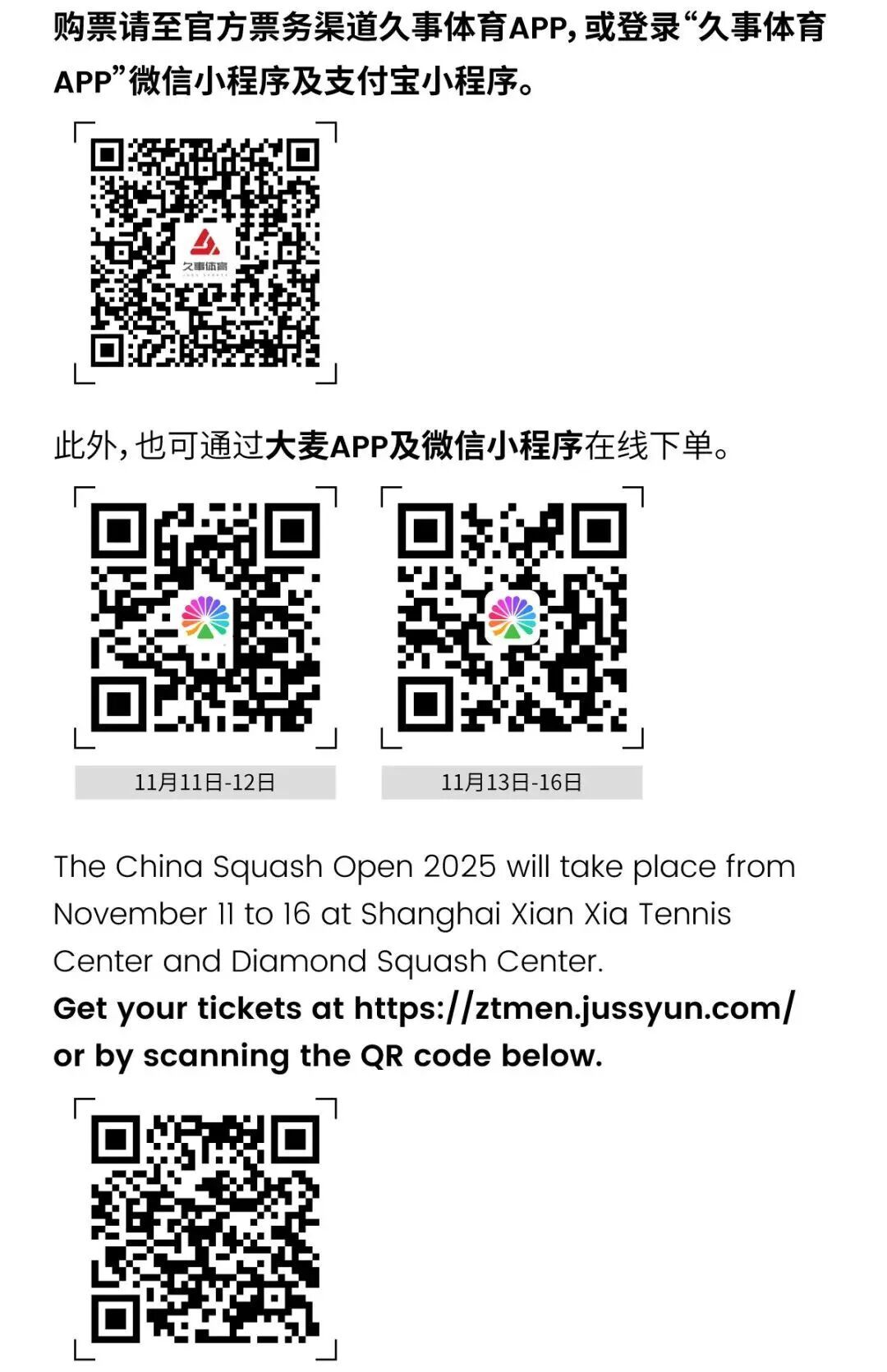 2025中国壁球公开赛将在两个场馆进行比赛,出发前记得确认好观赛场次和地点哦!强烈建议观众朋友绿色出行!