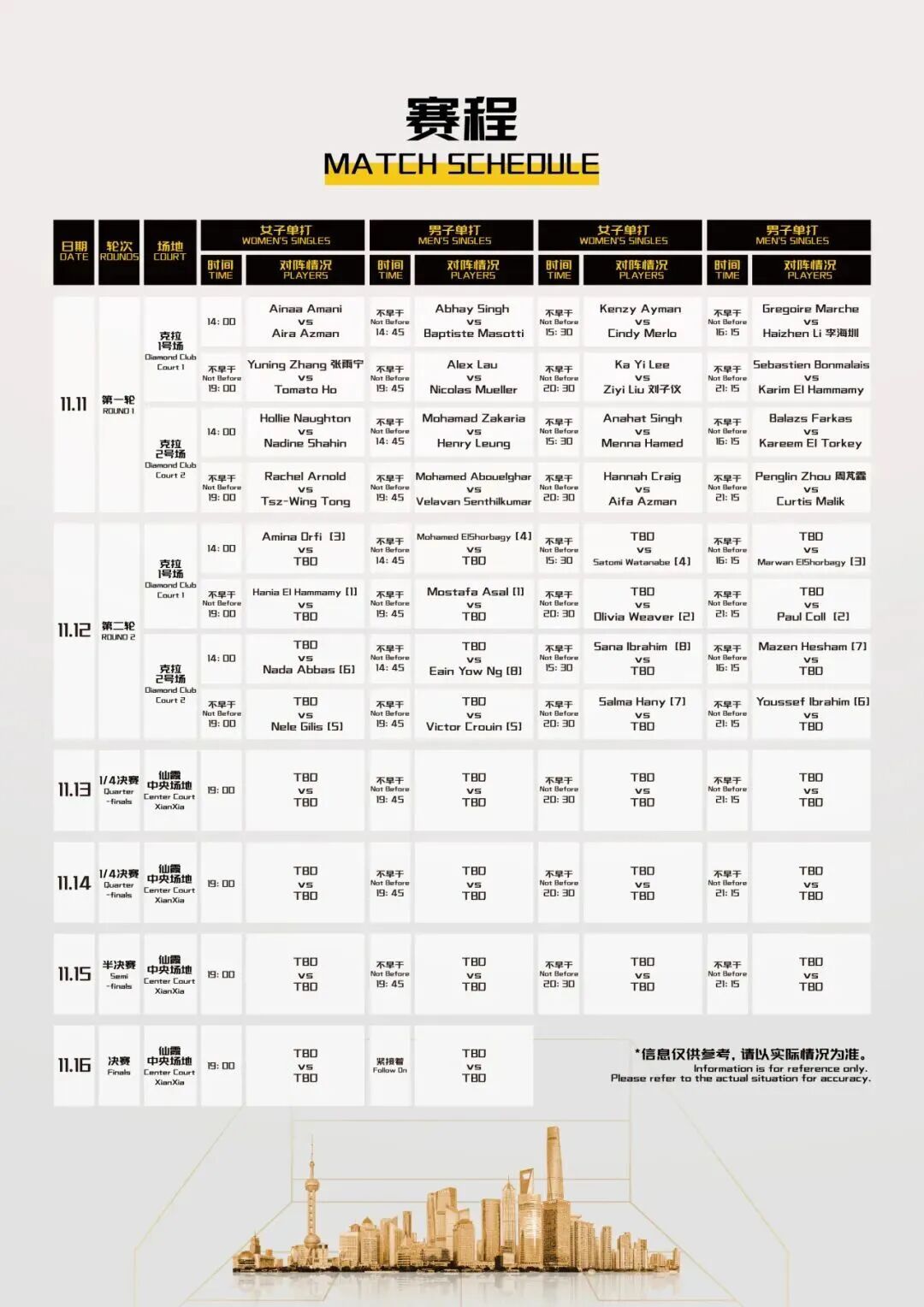 赛事日程和开赛时间可能会有变化,请持续关注官方微博及微信公众号,获取最新信息。