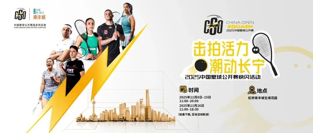 11月8日起,2025中国壁球公开赛快闪活动——“击拍活力·潮动长宁”将在虹桥南丰城抢先登场!