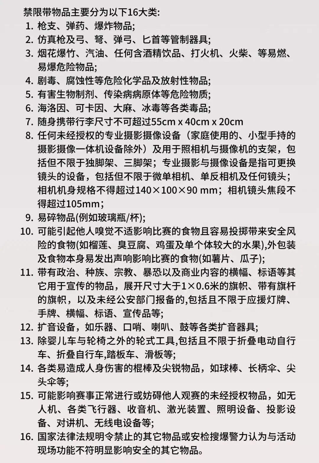 在检票前请大家配合安检,以下物品不要携带入场哦