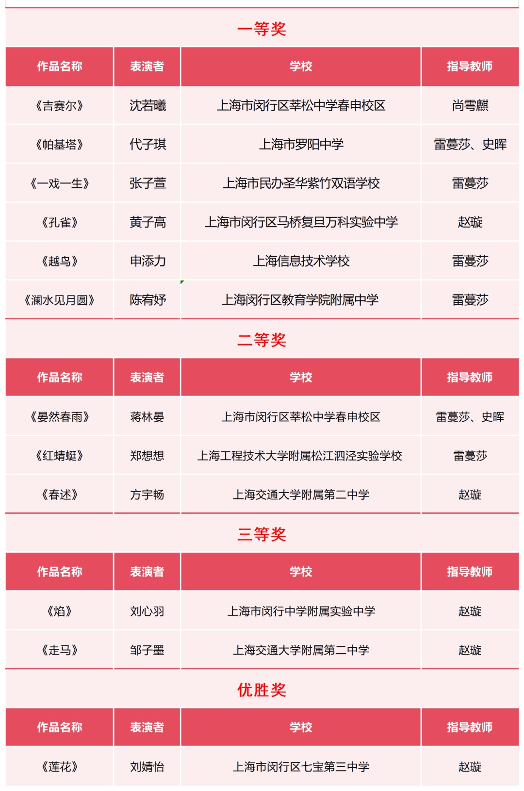 闵行区获奖名单