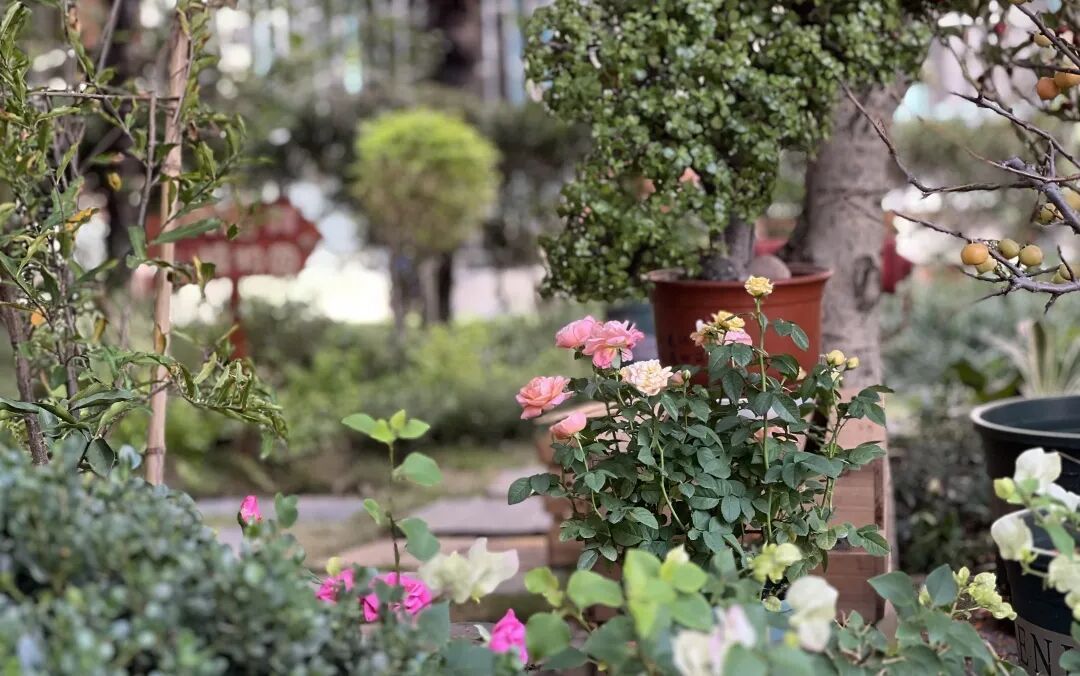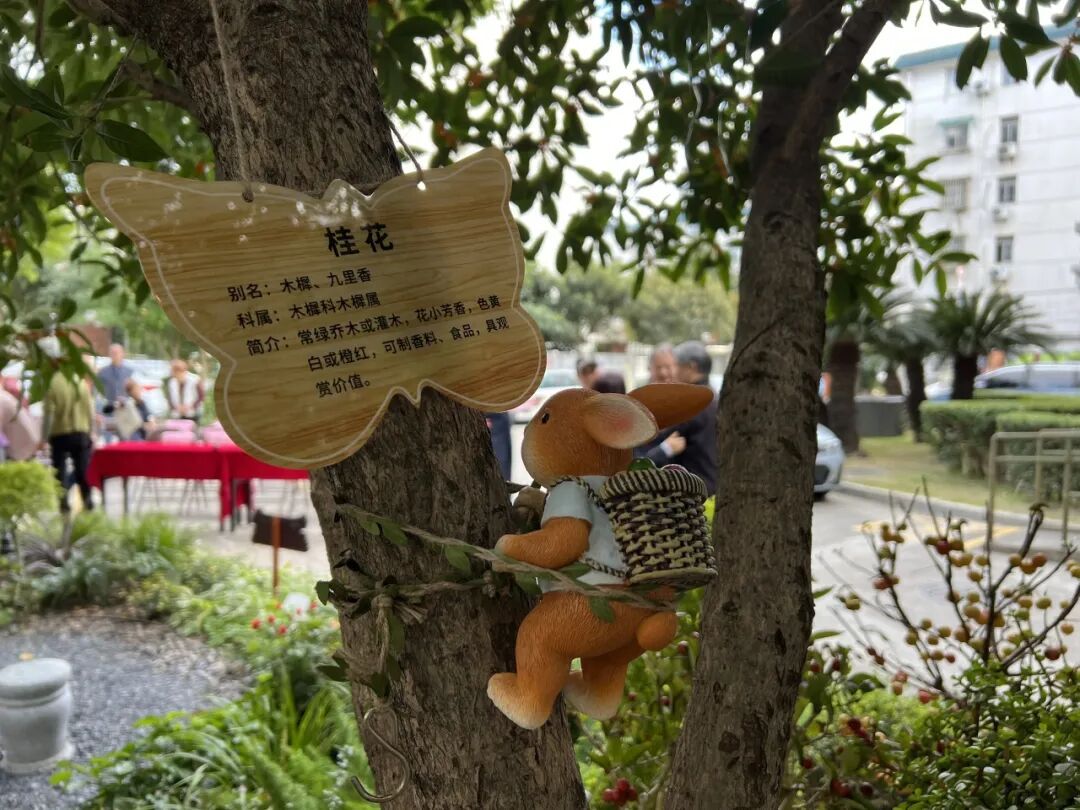 郁郁葱葱的“金枝玉叶”、红黄相间的“海棠果”、香气浓郁的金桂树……各色花草在秋日阳光下显得格外生机勃勃。当天下午,“惠邻花驿”微花园崭新亮相,居民在工作人员的引导下“组团”参观,一同感受“家门口”的秋日野趣。