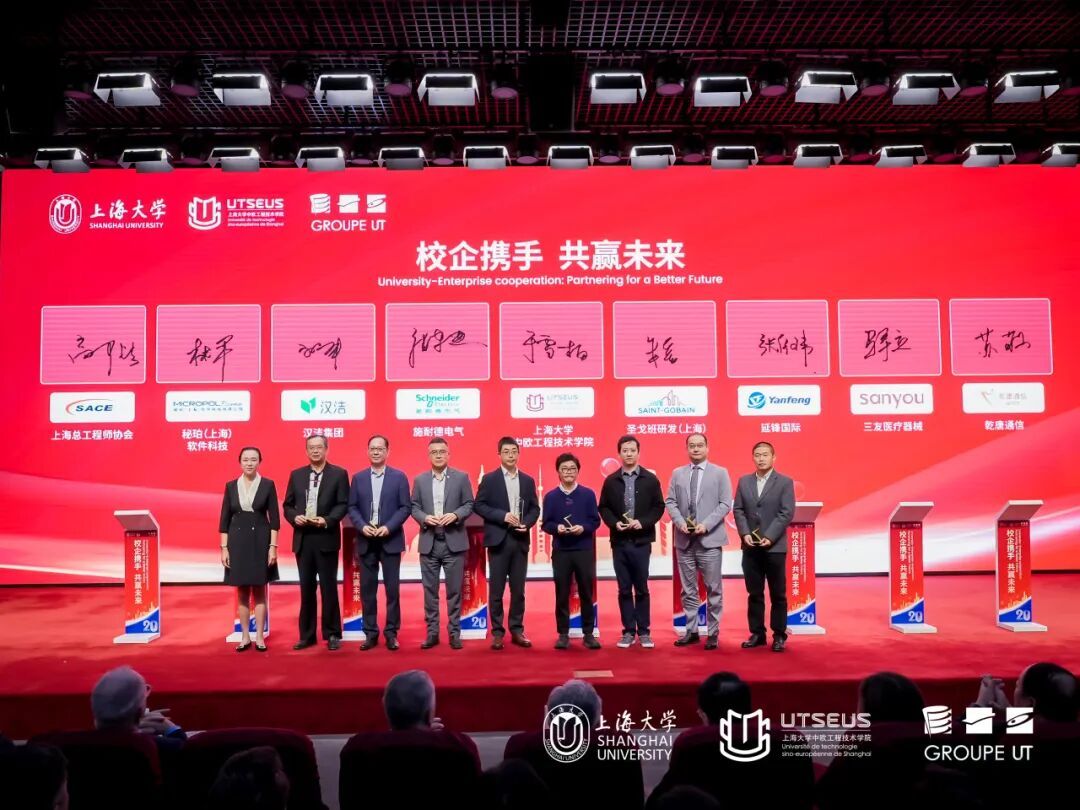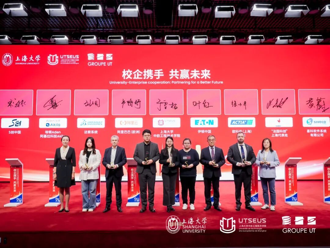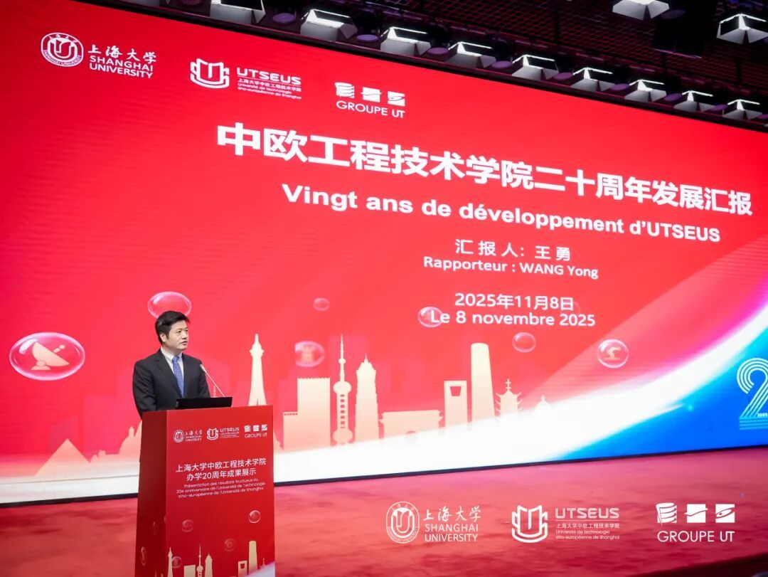 11月8日,上海大学中欧工程技术学院办学20周年主题大会在宝山校区图书馆报告厅召开。大会以“廿载匠心·融汇中欧·智启未来”为主题,全面回顾学院二十年发展历程,展示中法工程教育合作的丰硕成果,共同展望未来。出席本次活动的有法国驻上海总领事馆总领事Joan Valadou,法国贡比涅技术大学(UTC)校长Claire Rossi,法国贝尔福-蒙贝利亚尔技术大学(UTBM)校长Ghislain Montavon,上海大学校长、中国科学院院士刘昌胜,上海交通大学巴黎卓越工程师学院院长陈彩莲,北航中法工程师学院党委书记张江等国内中法学院领导,以及施耐德电气等企业代表,校内各职能部处、学院领导等共100多位嘉宾。 嘉宾致辞:共话合作,共期未来 上海大学校长、中国科学院院士刘昌胜,法国驻上海总领事馆总领事Joan Valadou,法国贝尔福-蒙贝利亚尔技术大学(UTBM)校长Ghislain Montavon分别致辞,对学院二十年来在中法工程教育领域取得的成果表示肯定,并对未来合作寄予期望。 刘昌胜校长在致辞中强调,中欧工程技术学院是上海大学推进国际化办学、深化产教融合的重要组成部分,学校将继续支持学院探索高水平中外合作办学路径,为卓越工程师培养提供有力支撑。 Joan Valadou总领事表示,中欧工程技术学院是中法高等教育合作的典范,也是中法友谊的生动体现,期待学院继续发挥桥梁作用,推动中法教育合作与人文交流。 Ghislain Montavon回顾了两校合作历程并指出,双方在办学理念、课程建设、科研创新等方面相互借鉴、协同共进,为学院发展奠定了坚实基础。 上海大学副校长、中欧工程技术学院院长于雪梅担任大会主持。 学院发展回顾:深耕合作,成效显著 中欧工程技术学院执行院长王勇作办学二十周年发展回顾报告,从人才培养、科研合作、产教融合、文化交流四个维度,梳理学院发展脉络与阶段性成果。自2005年以来,学院已累计培养毕业生三千余名,众多校友在高端制造、能源管理、数字科技等领域成为技术骨干与创新力量。学院将法国精英工程师教育模式与中国本土实际相结合,构建了特色鲜明的人才培养体系,教学科研与产教融合成效有目共睹。 校企合作:协同育人,共谋发展 校企合作既是法国工程师培养体系的核心环节,也是学院办学特色与发展的关键。学院二十年的发展离不开多年合作伙伴的长期支持,为感谢企业合作伙伴的支持,以及对在未来办学中继续携手的期许,学院与达索析统信息技术有限公司、伊顿中国及北亚区、阿基拉科技(上海)有限公司、欧科佳(上海)汽车电子设备有限公司、喜科软件系统有限公司、FRENCH TECH SHANGHAI、S创中国、施耐德电气(中国)有限公司、圣戈班研发(上海)有限公司、延锋国际汽车技术有限公司、汉洁集团、三友医疗器械有限公司、秘珀(上海)软件科技有限公司、上海乾唐通信技术有限公司、上海总工程师协会等企业代表举行了现场签字仪式,并向企业代表赠送了感谢牌。这些企业伙伴深度参与学院核心教学环节,通过提供教育基金、实习岗位、创新实践平台,以及授课教学、共建课程、支持创新竞赛等方式,共同提升学生核心竞争力。 施耐德电气(中国)有限公司高级技术经理张东进在发言中,介绍了施耐德与学院在技术研讨、实习基地建设、创新课题合作等方面的实践,肯定了中欧学院学生在跨文化沟通与工程实践方面的综合能力,表示将继续推进校企在人才培养与技术创新方面的协同发展。 “智启未来”启动: 携手并进,共启新程 二十年是里程碑,也是新起点。面向未来,中欧学院在已有的基础上,在工程师教育领域继续努力,再启新章。上海大学校长刘昌胜、法国贡比涅技术大学(UTC)校长Claire Rossi、法国贝尔福-蒙贝利亚尔技术大学(UTBM)校长Ghislain Montavon、法国特鲁瓦工程技术大学(UTT)龚晓路教授、阿基拉科技(上海)有限公司代表Philippe Obry、中欧工程技术学院执行院长王勇、法方院长Fabien Pfaender共同启动“智启未来”计划,标志着学院将进一步推进工程教育模式创新与产学研深度融合。 廿载时光,中欧学院构建起中法工程教育优势互补、校企资源协同共享的办学特色。学院将以二十周年为新起点,优化人才培养结构,拓展科研合作路径,深化产教融合机制,持续探索培养适应未来产业需求的工程人才的有效路径。 聚焦前沿,共谋发展 8日下午,学院在钱伟长图书馆6楼匡迪讲堂举办了“中欧20周年-学院发展论坛”。本次论坛以“中国卓越工程师教育展望2030:变革、人工智能、可持续性与教育挑战”为主题,邀请贡比涅技术大学校长、北京航空航天大学中法航空学院法方院长、中国民航大学中欧航空工程师学院法方院长等嘉宾参与探讨。 当天下午还举行了中欧工程技术学院2025年校友值年返校暨校友分会换届大会。会议选举出中欧学院第二届校友理事会理事,并举行系列精彩纷呈的校友活动。