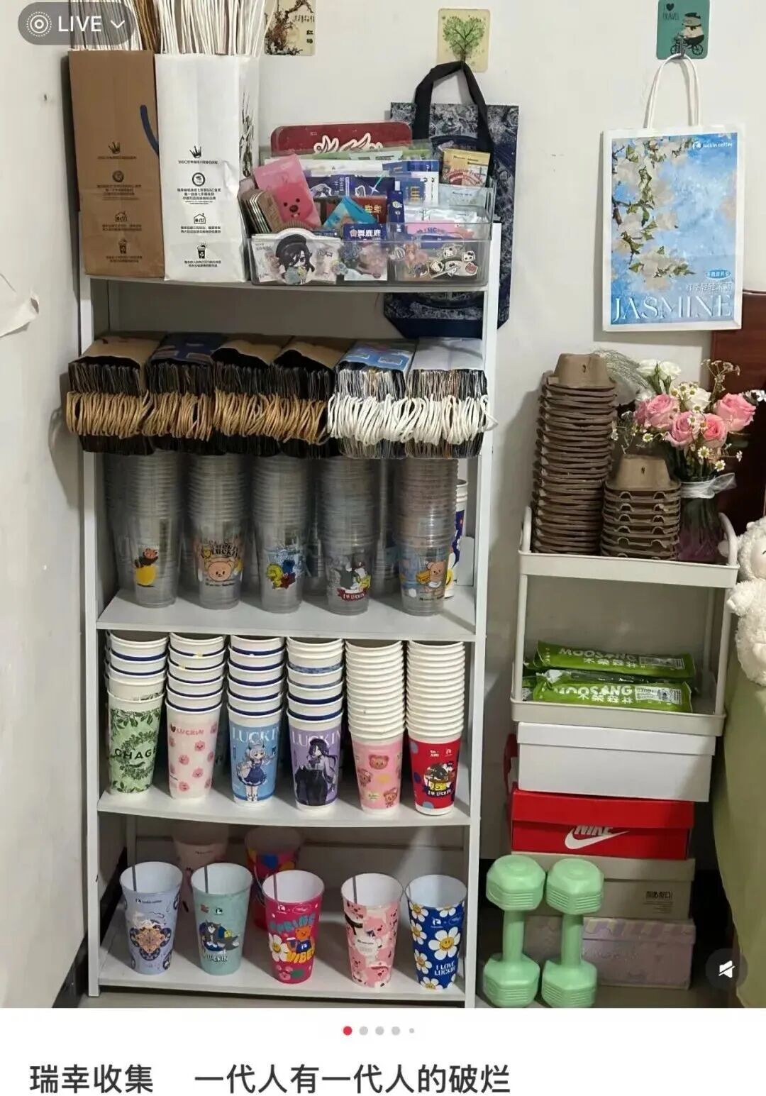 “都是自己攒来的,各个奶茶品牌出了新品之后,为了收集袋子,我会一次性多买三四杯,如果没有出新品,我基本上就不怎么喝奶茶。”26岁的橘子告诉记者,从去年4月份至今,他已收集了上千个奶茶袋子,出了新品就是为了袋子才去买的奶茶。他甚至专门买了一个货架来堆放这些袋子。“家人一开始不理解,后来也慢慢接受了这种收藏文化。”