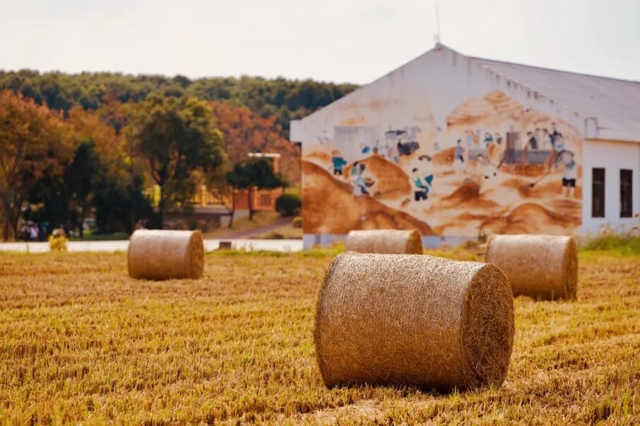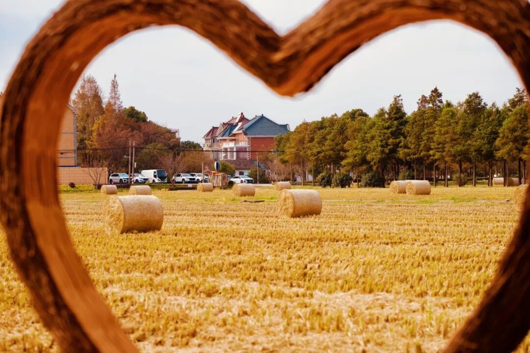 没有城市内卷的焦虑,只有田野间的治愈时光。站在田埂上,看风吹过千亩良田掀起金色涟漪,阳光洒在草垛上泛着暖光,蓝天白云作背景,随手一拍都是自带滤镜的田园大片。走近和“瑞士卷”贴贴合影,坐在草垛边的爱心座椅上发呆,听田间的风声,闻着淡淡的秸秆清香,或是约上好友在田埂间漫步,所有疲惫都被这治愈的画面悄悄抚平。游客小顾说,在罗泾的稻田里,仿佛看见了“家门口的草原风光”,圆滚滚的草垛子让乡野多了份童趣与诗意。