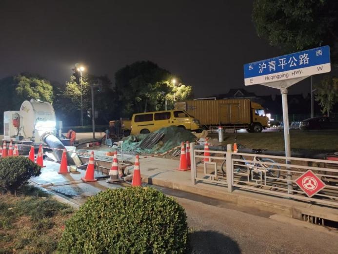 以沪青平公路非开挖技术应用为例。沪青平公路连接虹桥枢纽,毗邻国家会展中心。周边分布着多个住宅区与商业区,沿线地下埋设有国防光缆、长途电信管线、高压燃气管及超高压电力线等设施,地下环境极其复杂。沪青平公路(华徐公路-诸光路)给水管段位于道路南侧绿化及人行道,管径为DN700和DN500铸铁给水管,全长3千米,管道竣工于90年代初,管龄30余年。此外,该段管网为进博会保障管道。