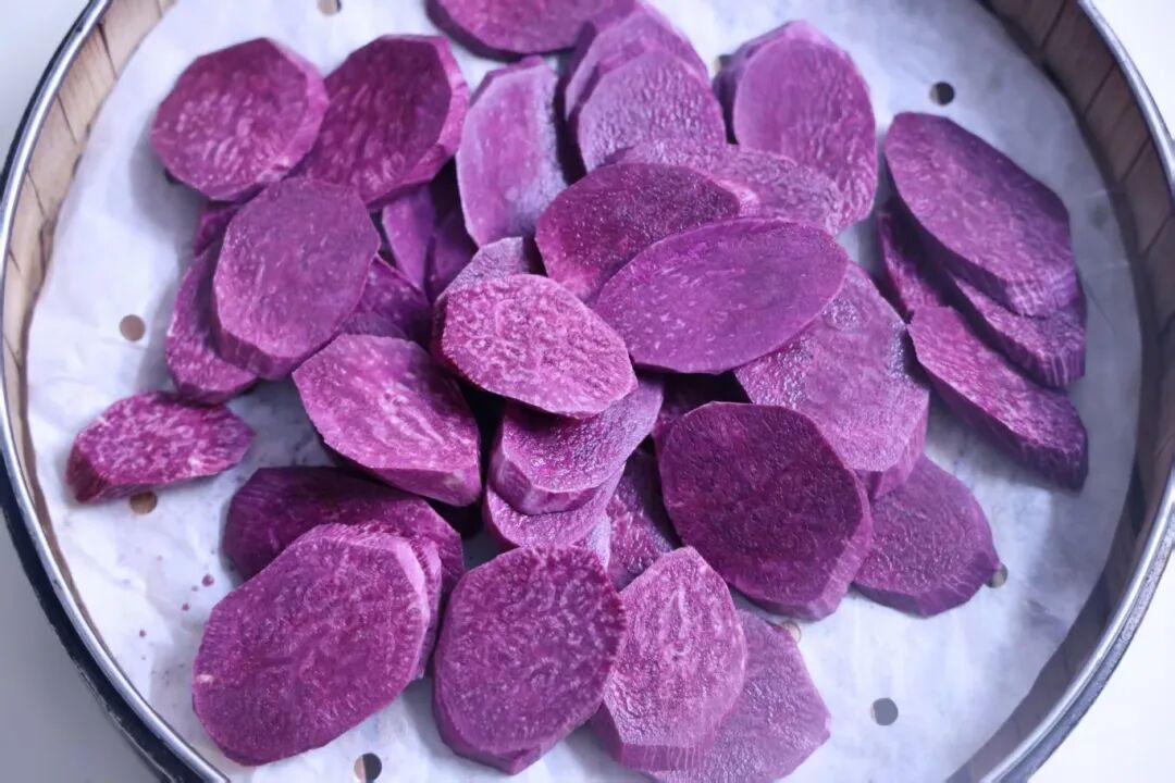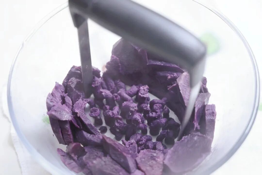 1.紫薯削皮蒸熟,压成泥。