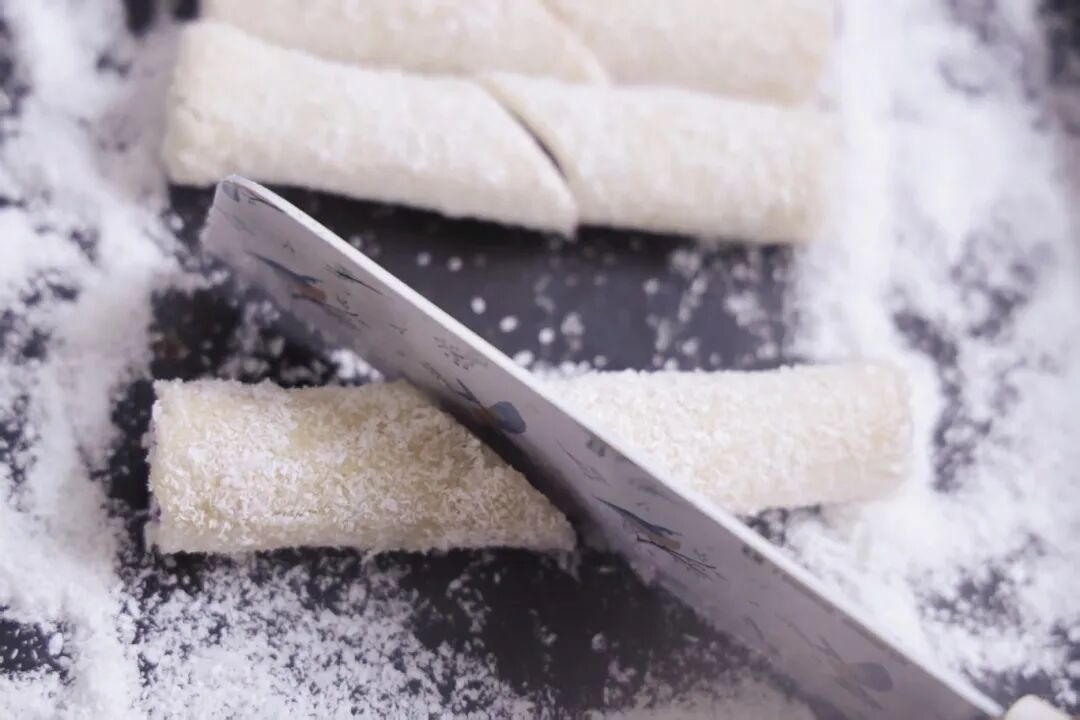 5.均匀撒上椰蓉,斜切。