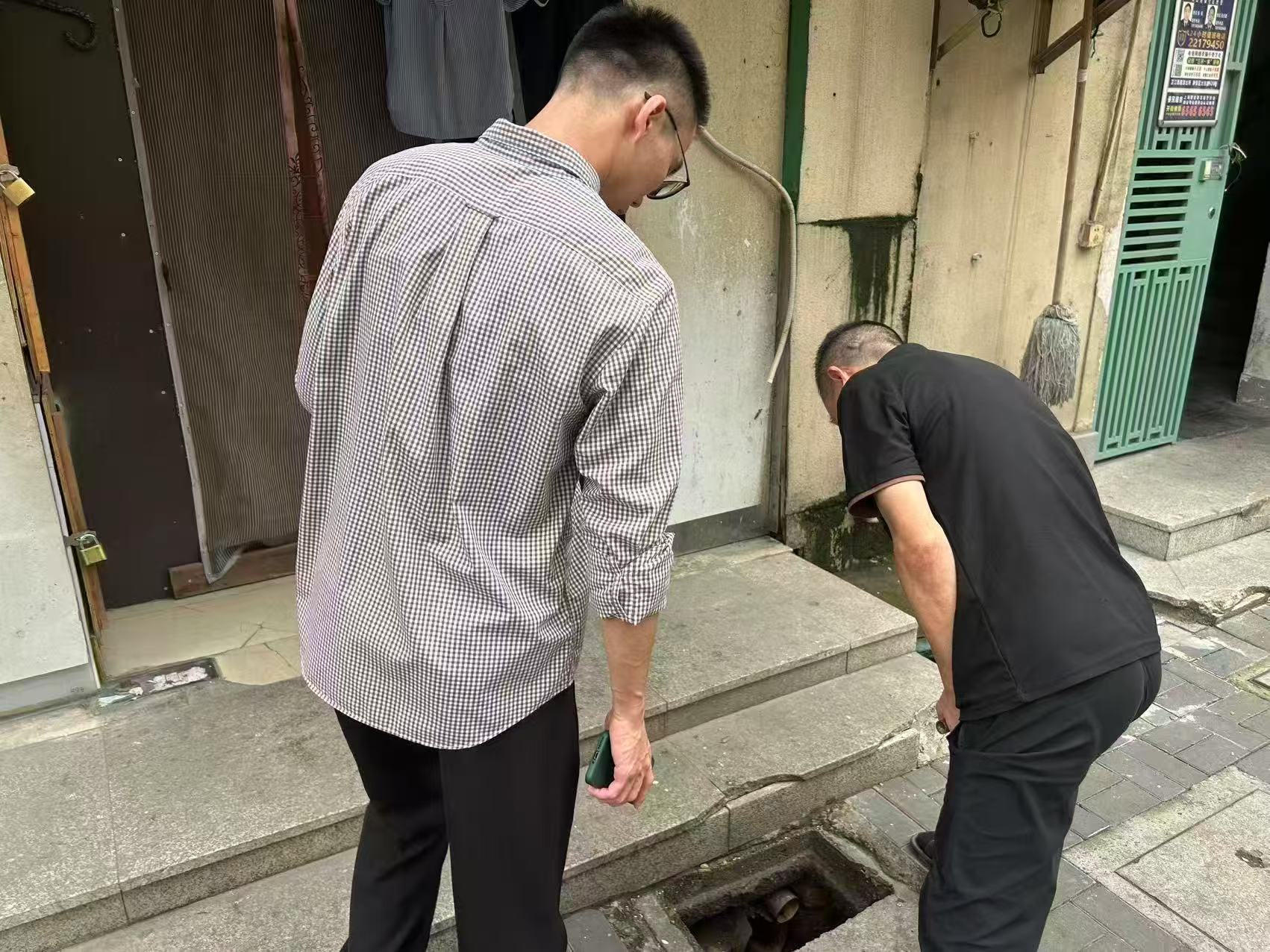 近日,这张卡就派上了大用场。当天早上,该路段一处排污口发生满溢,脏水横流、臭味扑鼻,路人纷纷绕行,严重影响了沿街店铺的正常营业。一通电话很快打到了徐璐斌那里。刚上班的他,接到反映后立刻动身,第一时间赶到现场。远远就闻到刺鼻气味,处于“风暴中心”的几家餐饮店更是焦急——问题不解决,生意根本没法做。