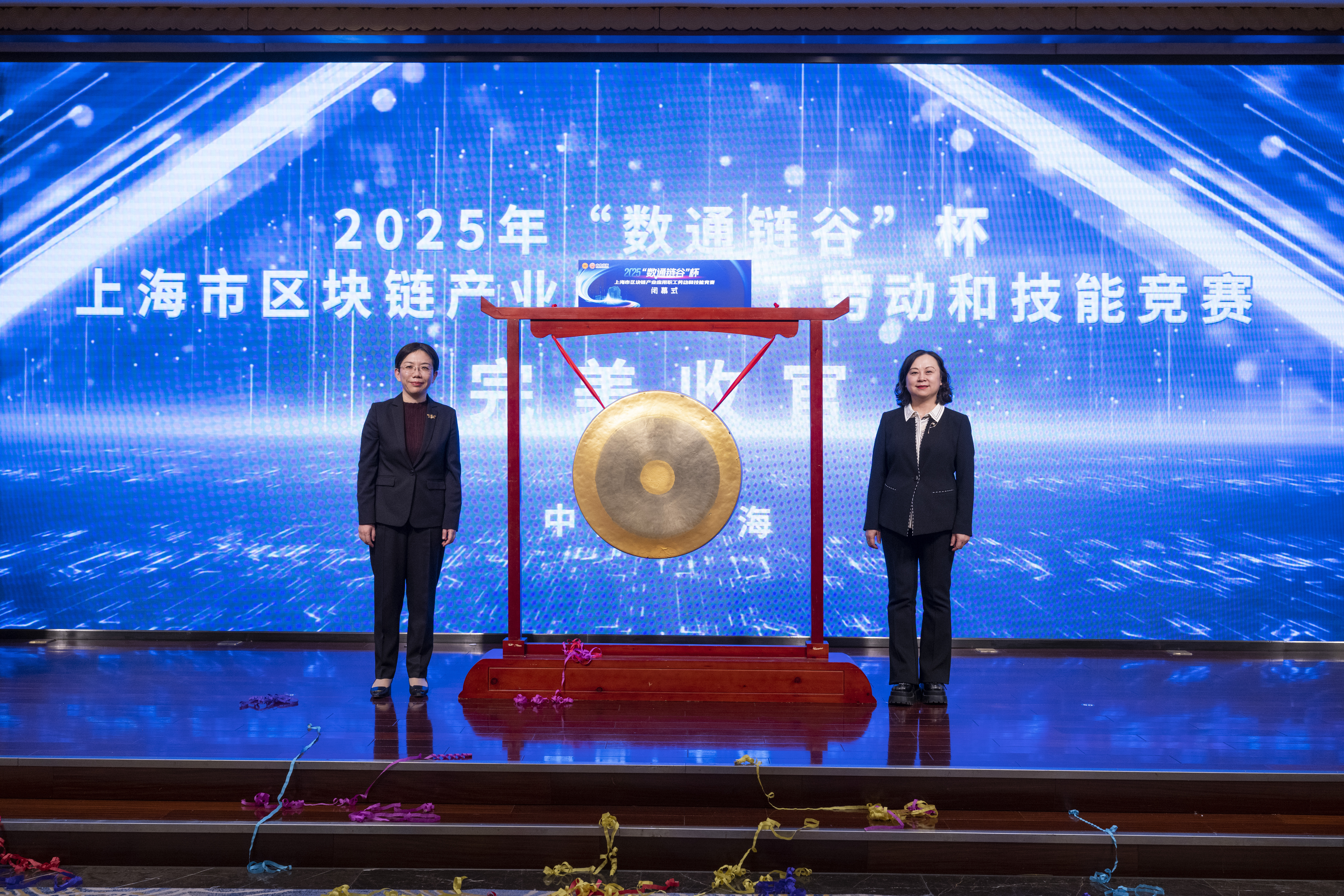 11月14日,2025年“数通链谷”杯上海市区块链产业应用职工劳动和技能竞赛闭幕式在市北科创会议中心举行。上海市总工会副主席桂晓燕,静安区人大常委会副主任、区总工会主席林晓珏出席活动并共同鸣锣,为本届竞赛画上圆满句号。