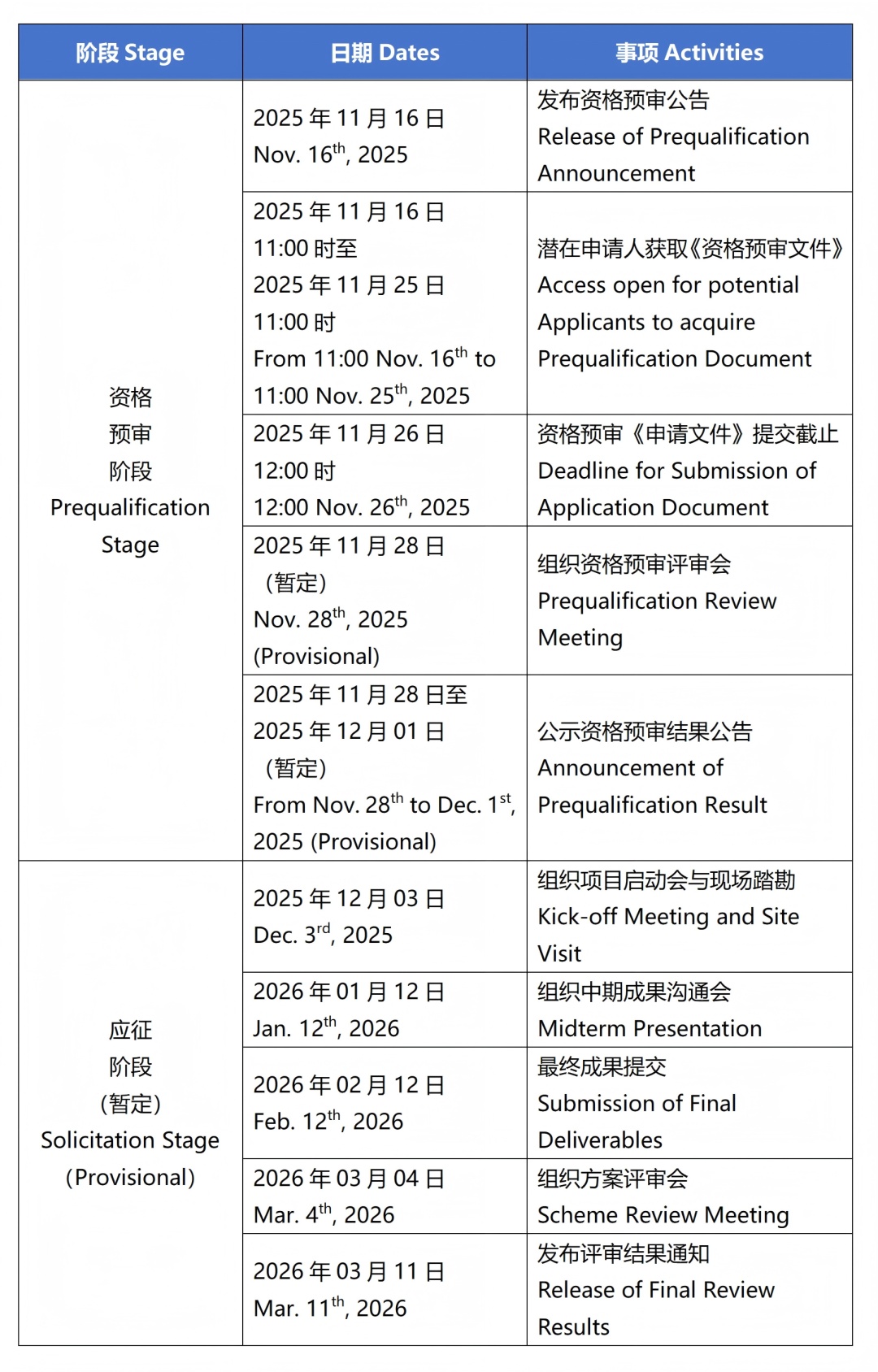 资格预审阶段、应征阶段时间节点初步安排如下: