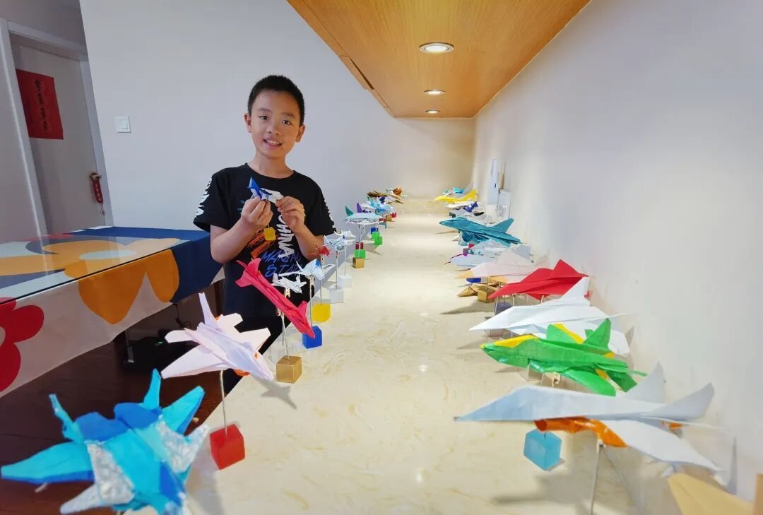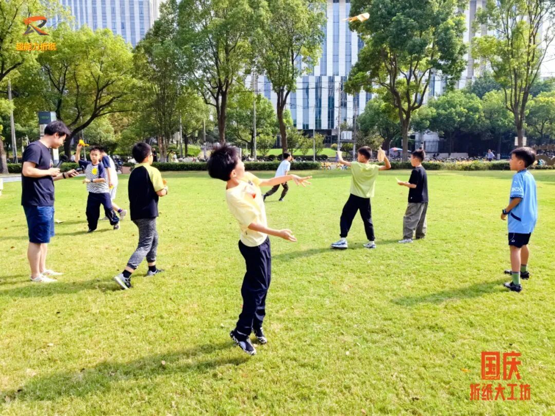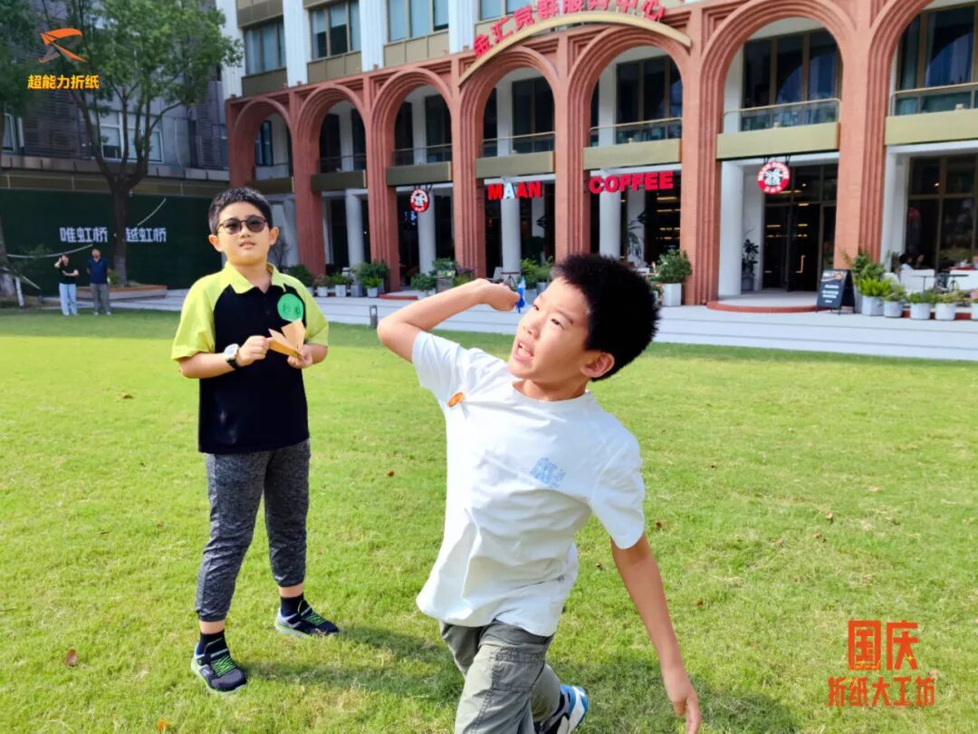 9月27日的“纸意映山河,同心向中华”,孩子们学习战机知识、折叠模型,在纸上写下“为国设计战斗机”的梦想后集体放飞;