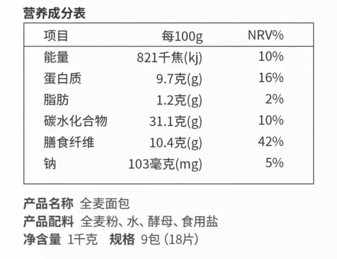 “100%全麦制作,减脂期必吃”的宣传让很多人深信不疑。但市面上很多全麦面包,真不是100%全麦粉,很多配料表第一位往往是精制小麦粉。