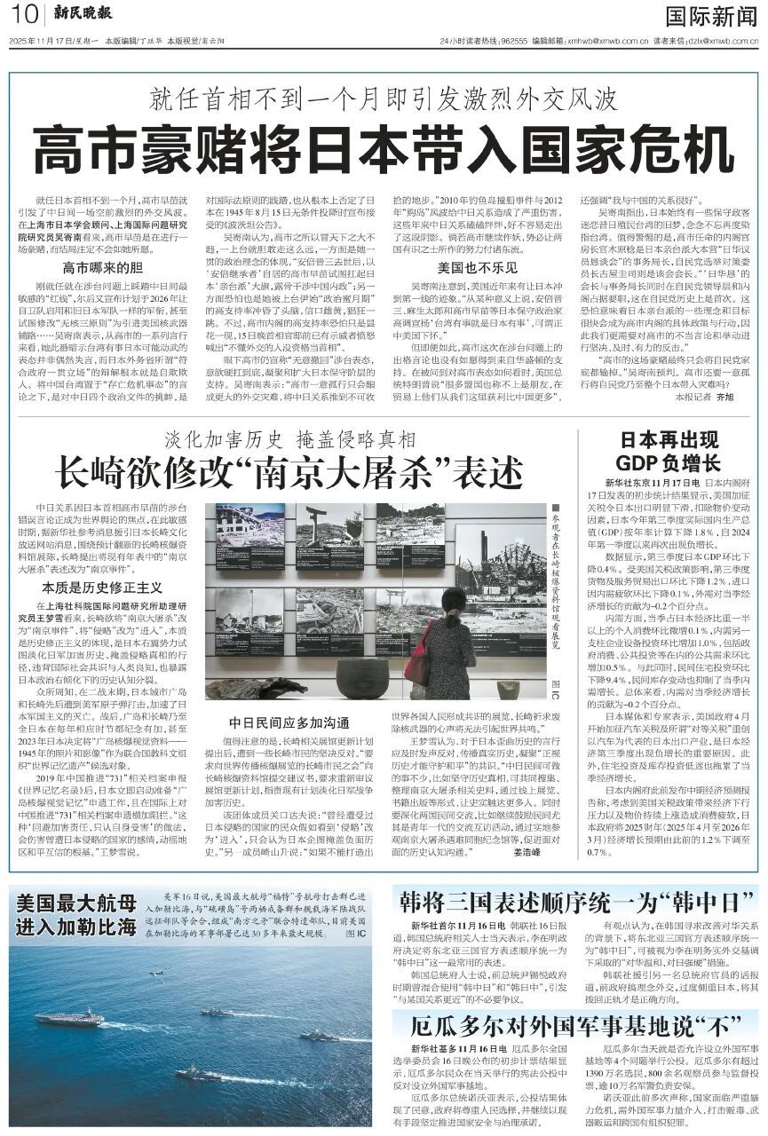 中日关系因日本首相高市早苗的涉台错误言论正成为世界舆论的焦点,在此敏感时期,据新华社参考消息援引日本长崎文化放送网站消息,围绕预计翻新的长崎核爆资料馆展陈,长崎提出将现有年表中的“南京大屠杀”表述改为“南京事件”。