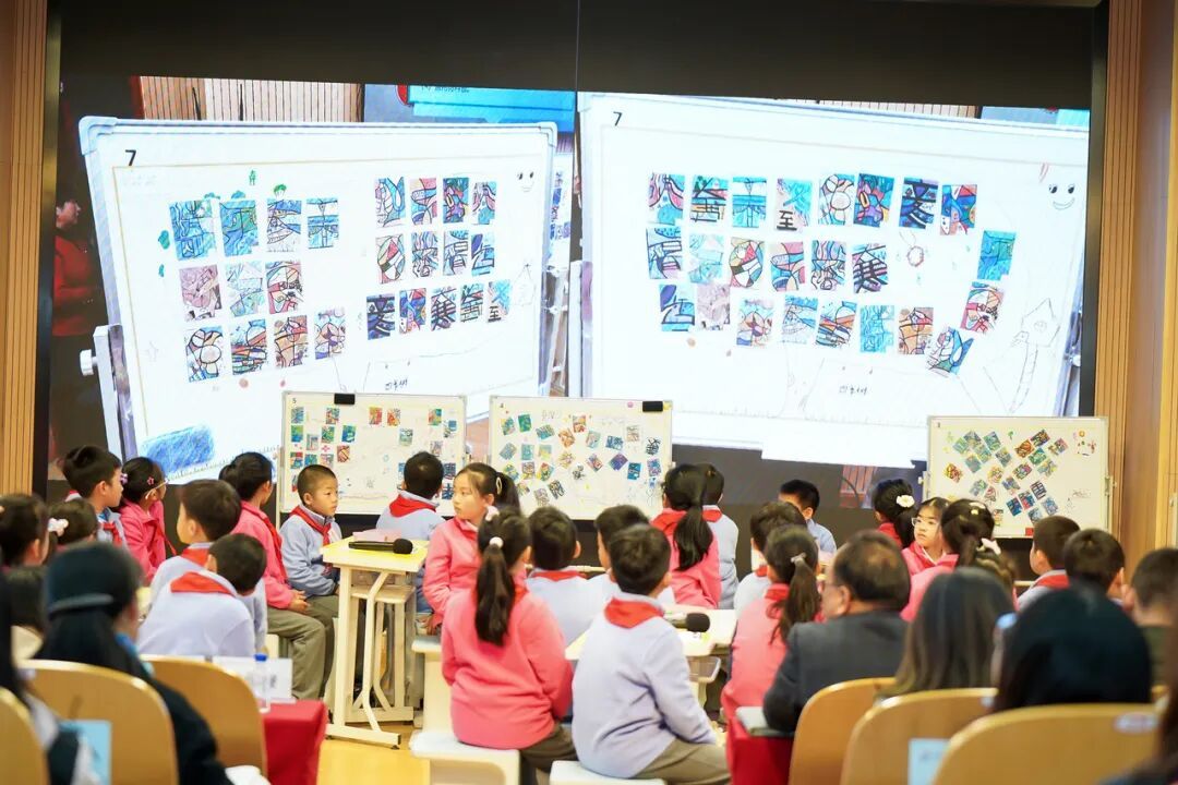 杨浦区开鲁新村第二小学校长薛蕾用6个字来概括整堂课:“真做事,做真事”,“教师设计了贴近学生校园生活的情境,让学生真正参与了环境的建设;在‘做真事’的过程中,教师为学生提供了探究的支架,将墙面和作品等比例转化为白板和磁铁,让孩子们拥有更丰富的学习体验。”