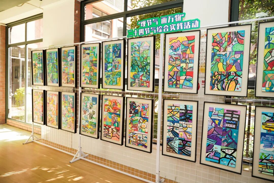 课后,肖睿告诉第一教育,“用作品装点白墙,把墙变成故事”早已成为校园里的一道风景线。这学期,正好轮到三年级学生设计学校走廊的白墙,“上学期的美术课上,全校学生亲手绘制了‘二十四节气小画’,尺寸不大,但如何在白墙上组合布局成了难题,于是,就想到了设计这样一堂课,来帮助孩子们建立美化公共环境的责任感。”